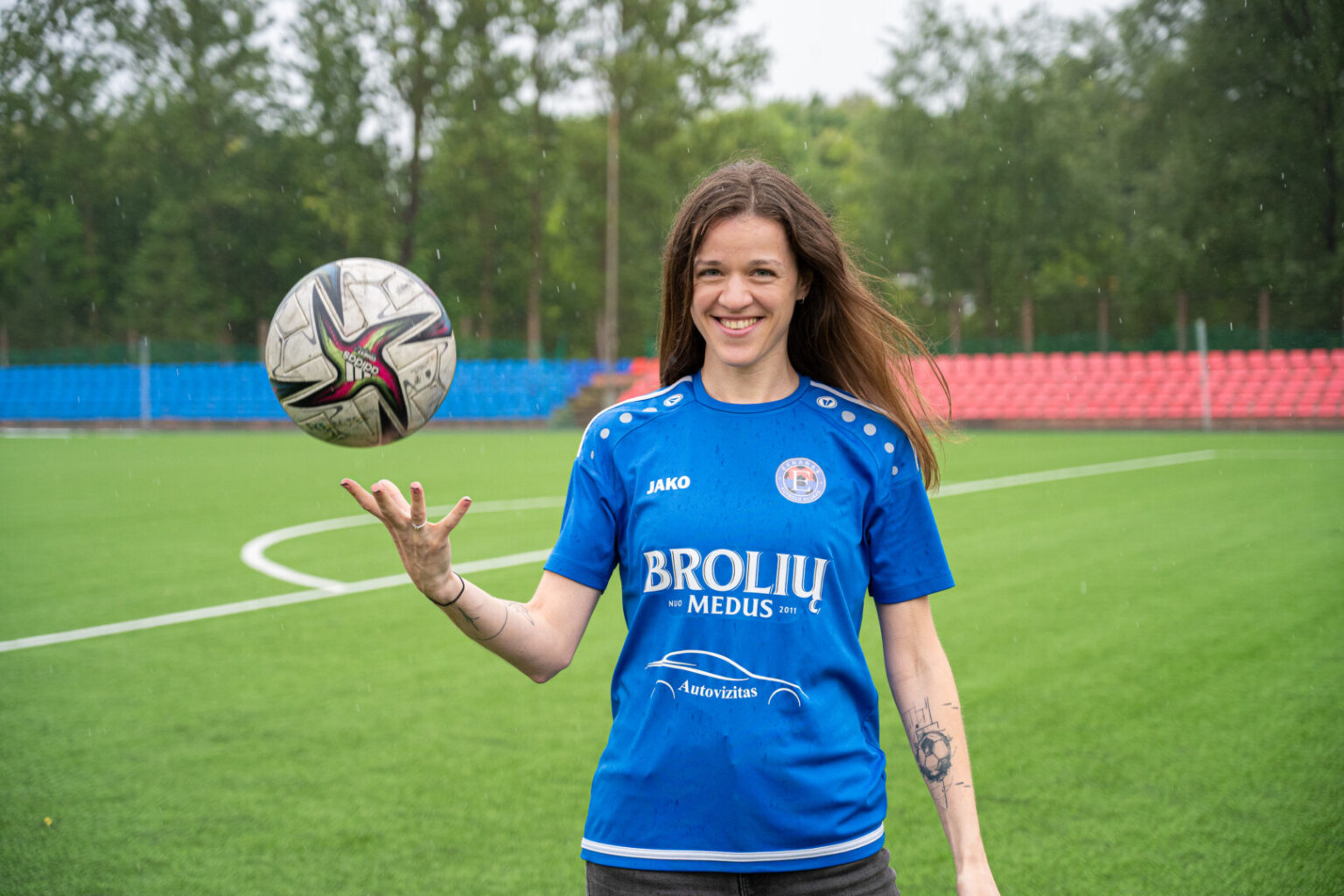 „Tėvai neleido lankyti futbolo, nes tai buvo tik berniukų sportas. Nuo mažų dienų intensyviai užsiėmiau lengvąja atletika, o kadangi ten taip pat buvo daugiausia berniukų, lengvosios atletikos manieže nuolat žaisdavome futbolą, tad šis žaidimas visuomet buvo labai artimas“, – pasakoja panevėžietė.