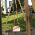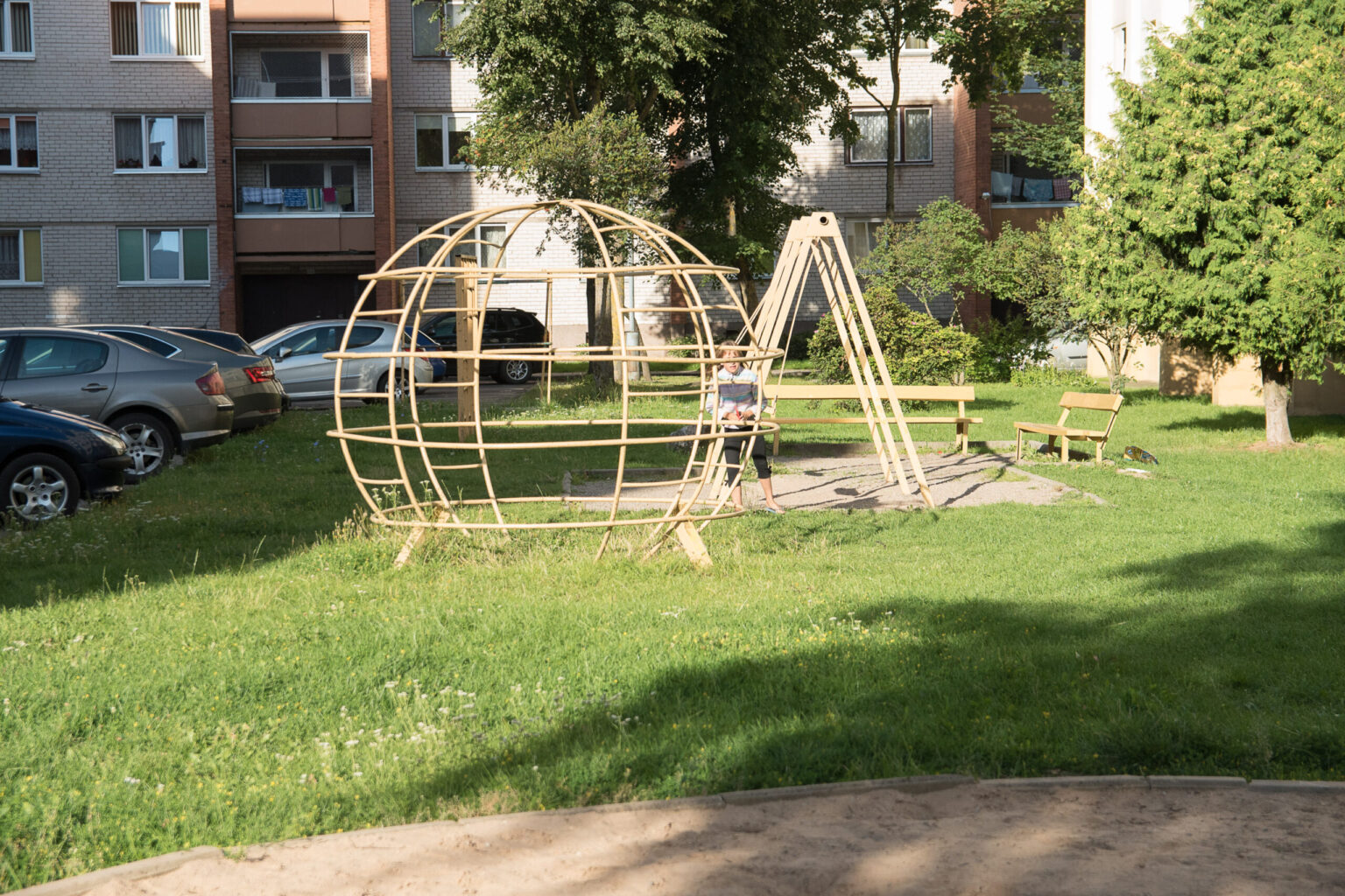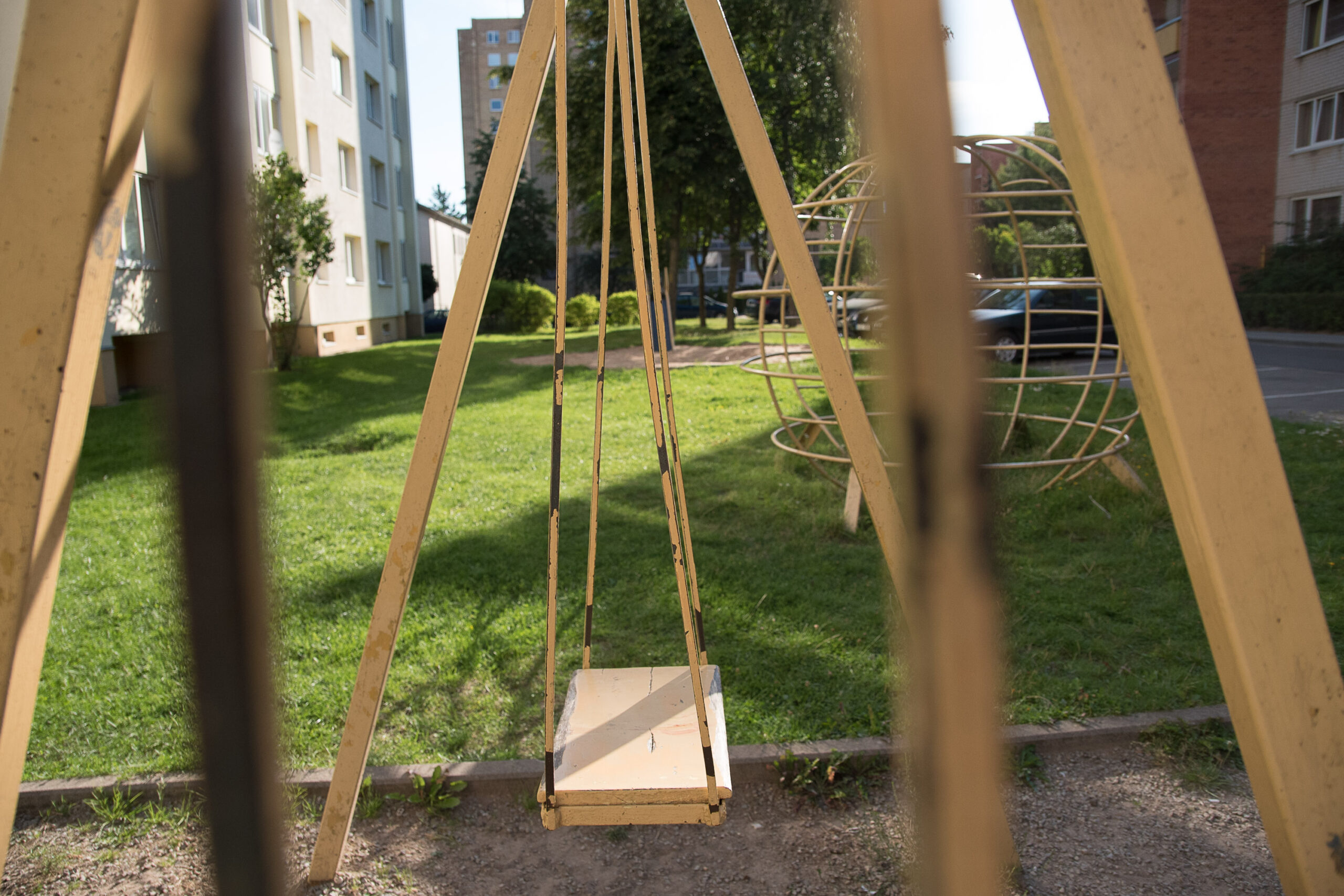 Sūpuoklės greta automobilių