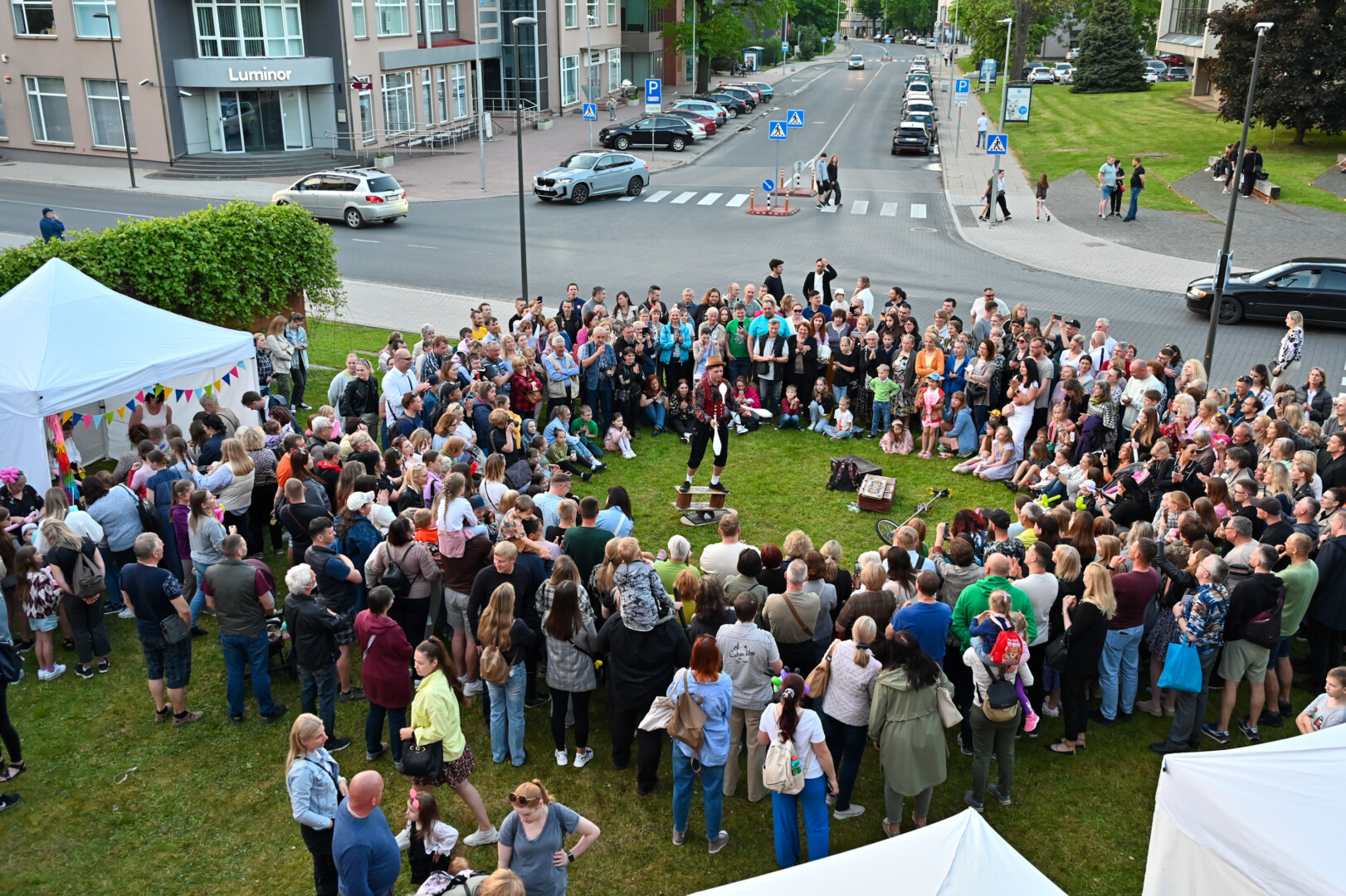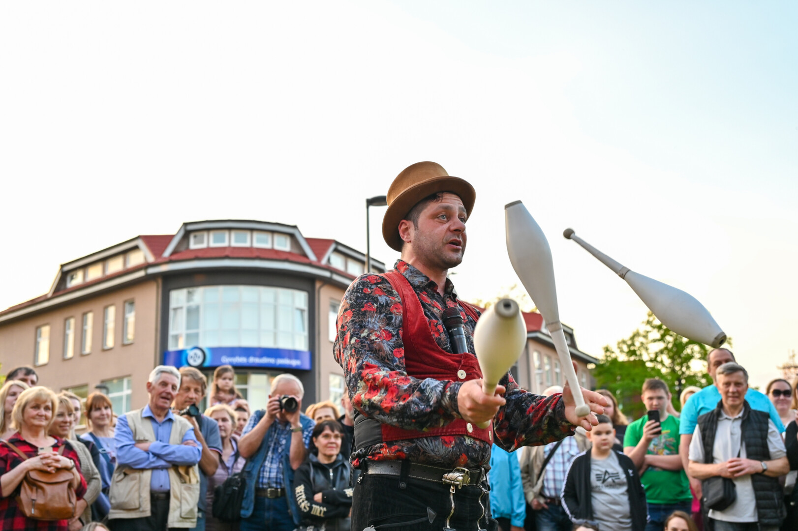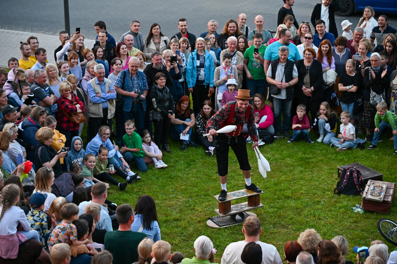 Pievelė šalia Kraštotyros muziejaus šį vakarą virto cirko arena įvairiems scenos profesionalams.