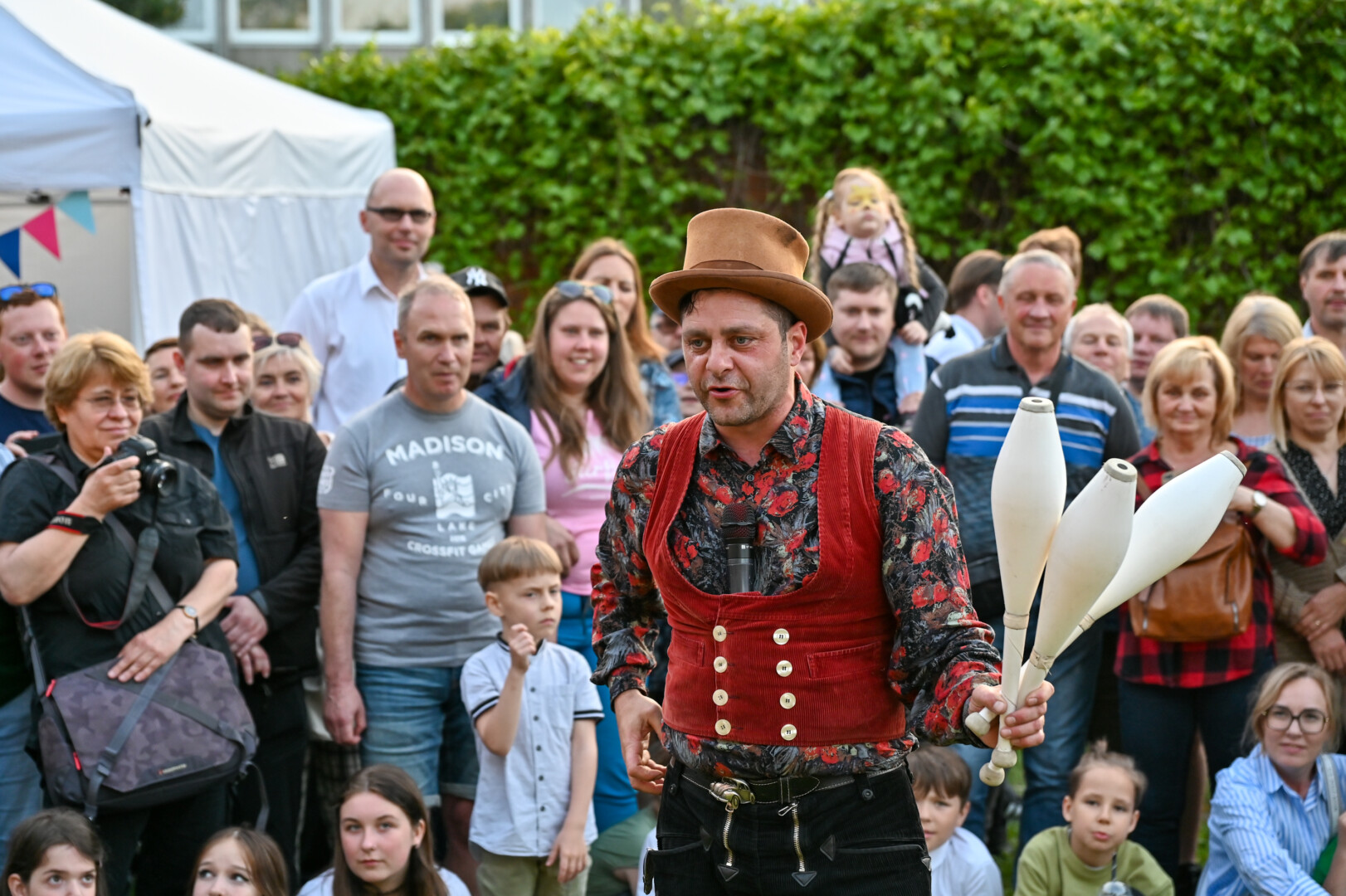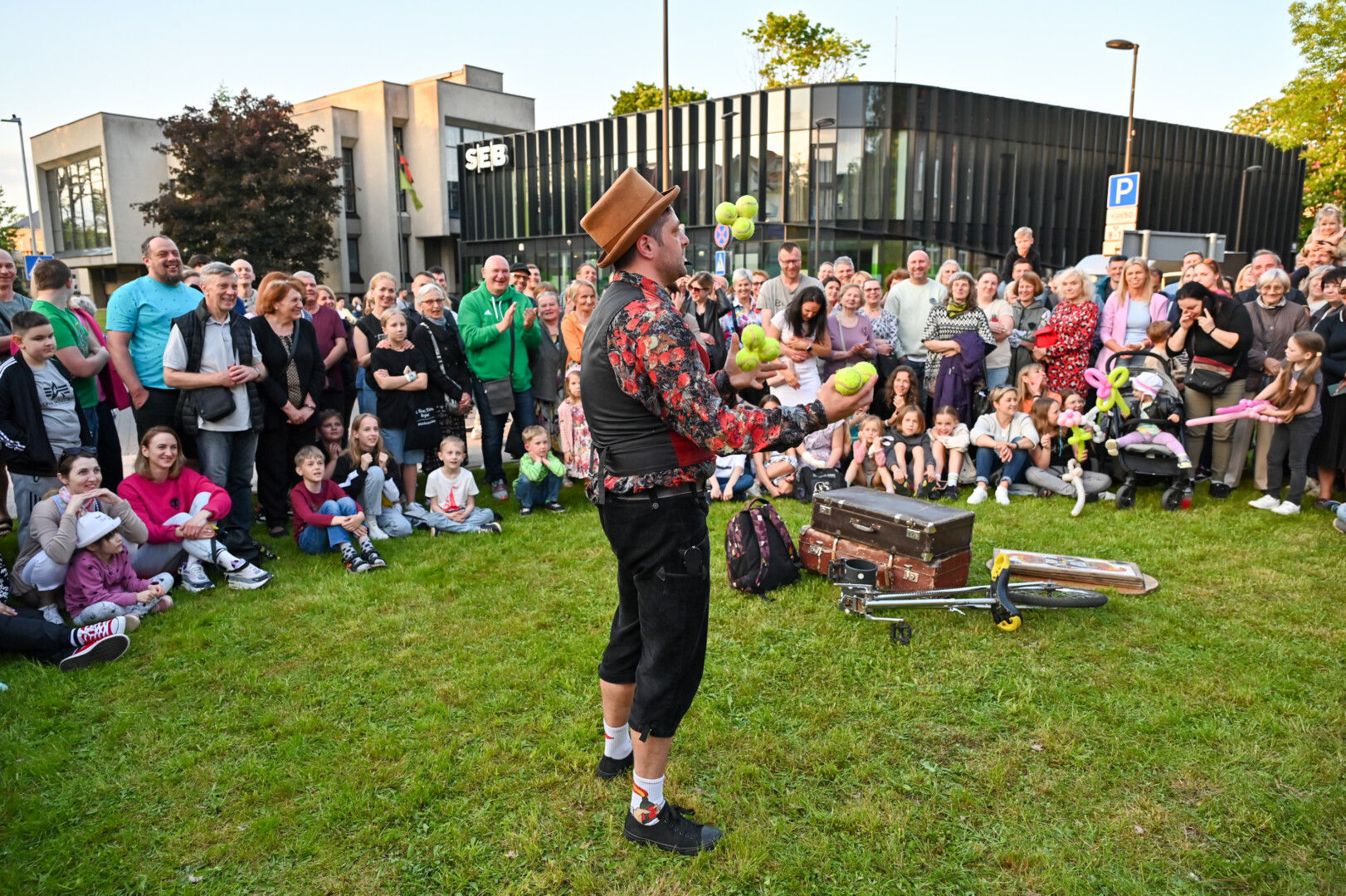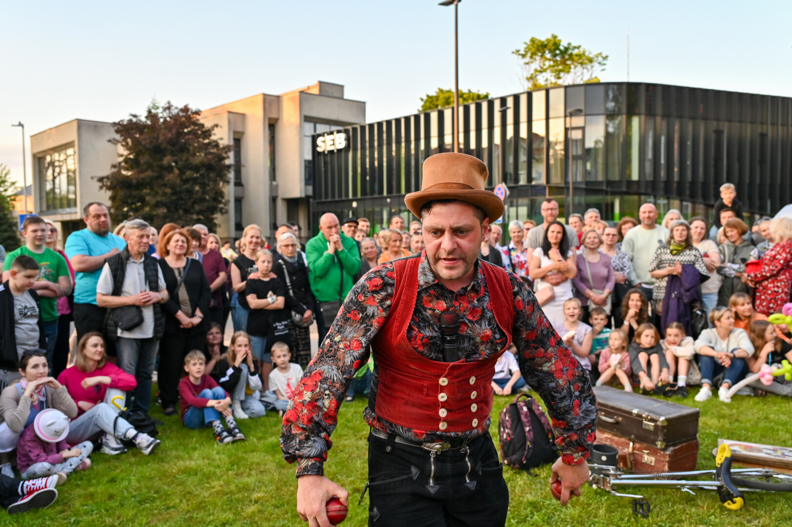 Pievelė šalia Kraštotyros muziejaus šį vakarą virto cirko arena įvairiems scenos profesionalams.
