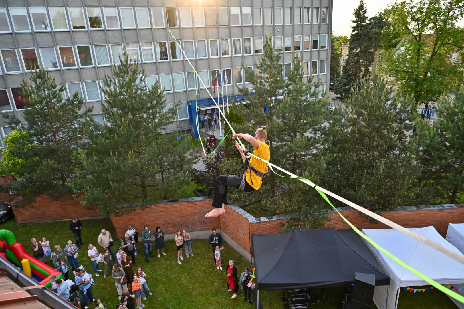 Ekstremaliausias vakaro pasirodymas – patyrusių „Slackline“ balansavimas ant lyno, ištiesto 9 metrų aukštyje, ištemptu tarp Panevėžio kraštotyros muziejaus ir Panevėžio rajono savivaldybės pastatų.