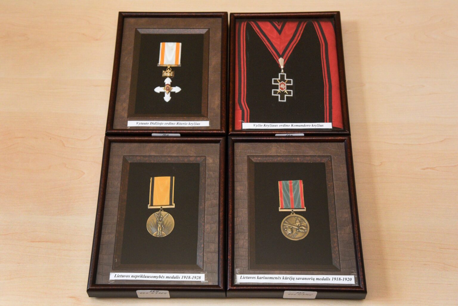Taip pat – ir kompozitoriaus itin brangintus apdovanojimus: Trečiojo laipsnio Vyčio Kryžiaus antros rūšies ordiną, Lietuvos savanorio medalį, Lietuvos Nepriklausomybės 10 metų jubiliejinį medalį ir Vytauto Didžiojo ordiną. Tiesa, tik dublikatus, pagamintus jau šiais laikais.