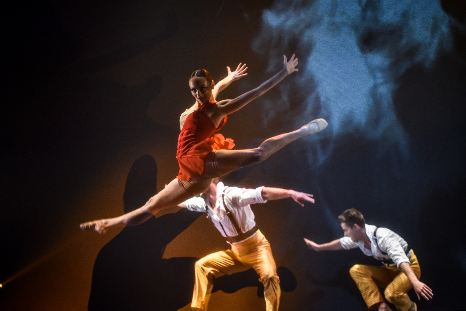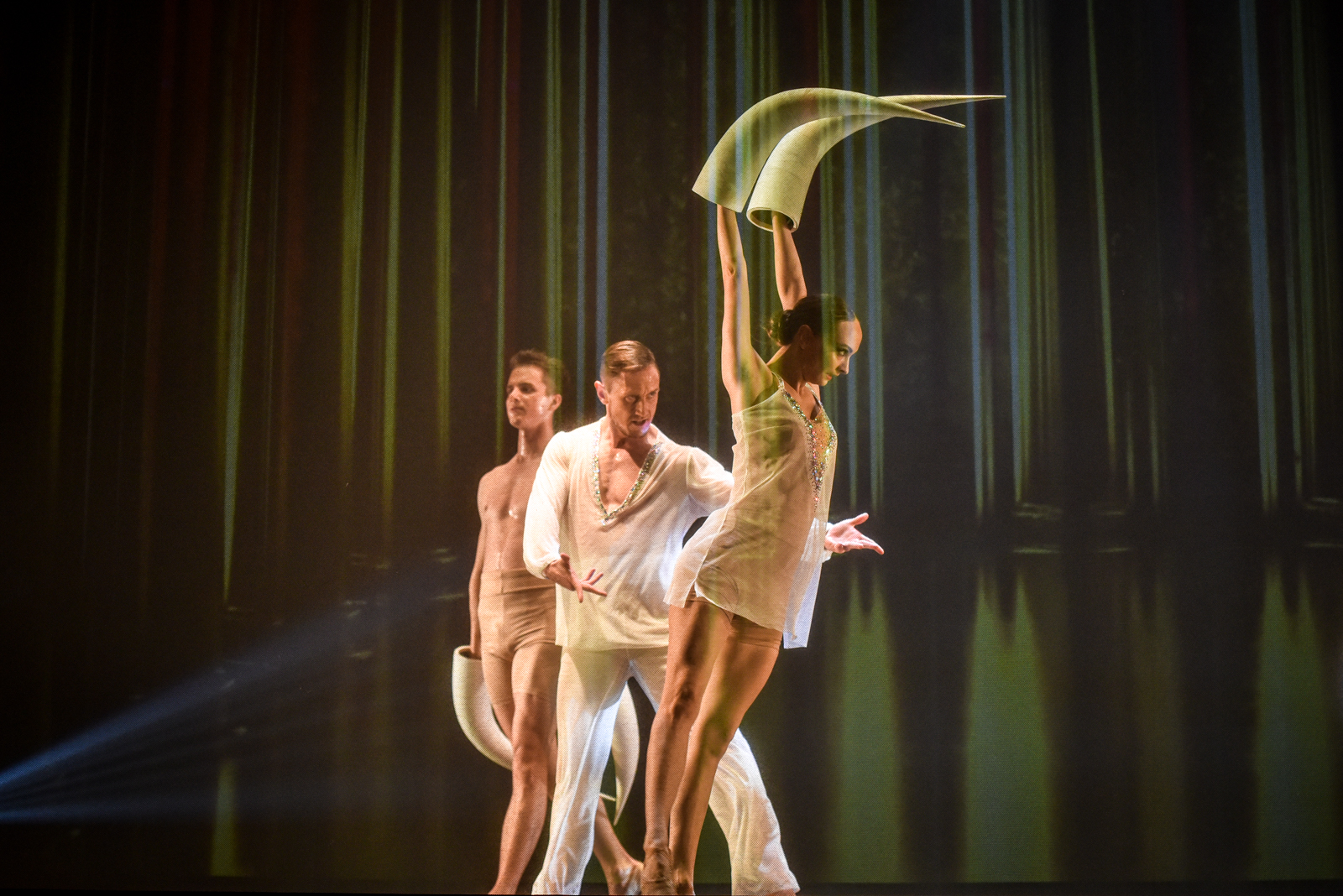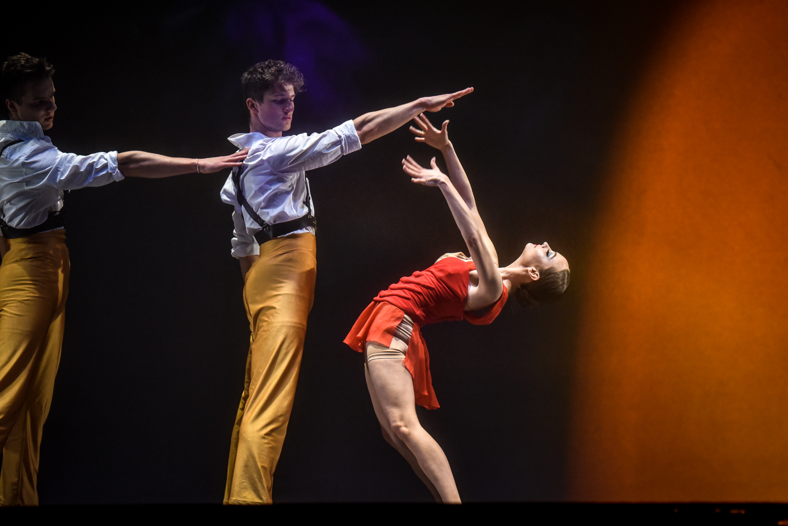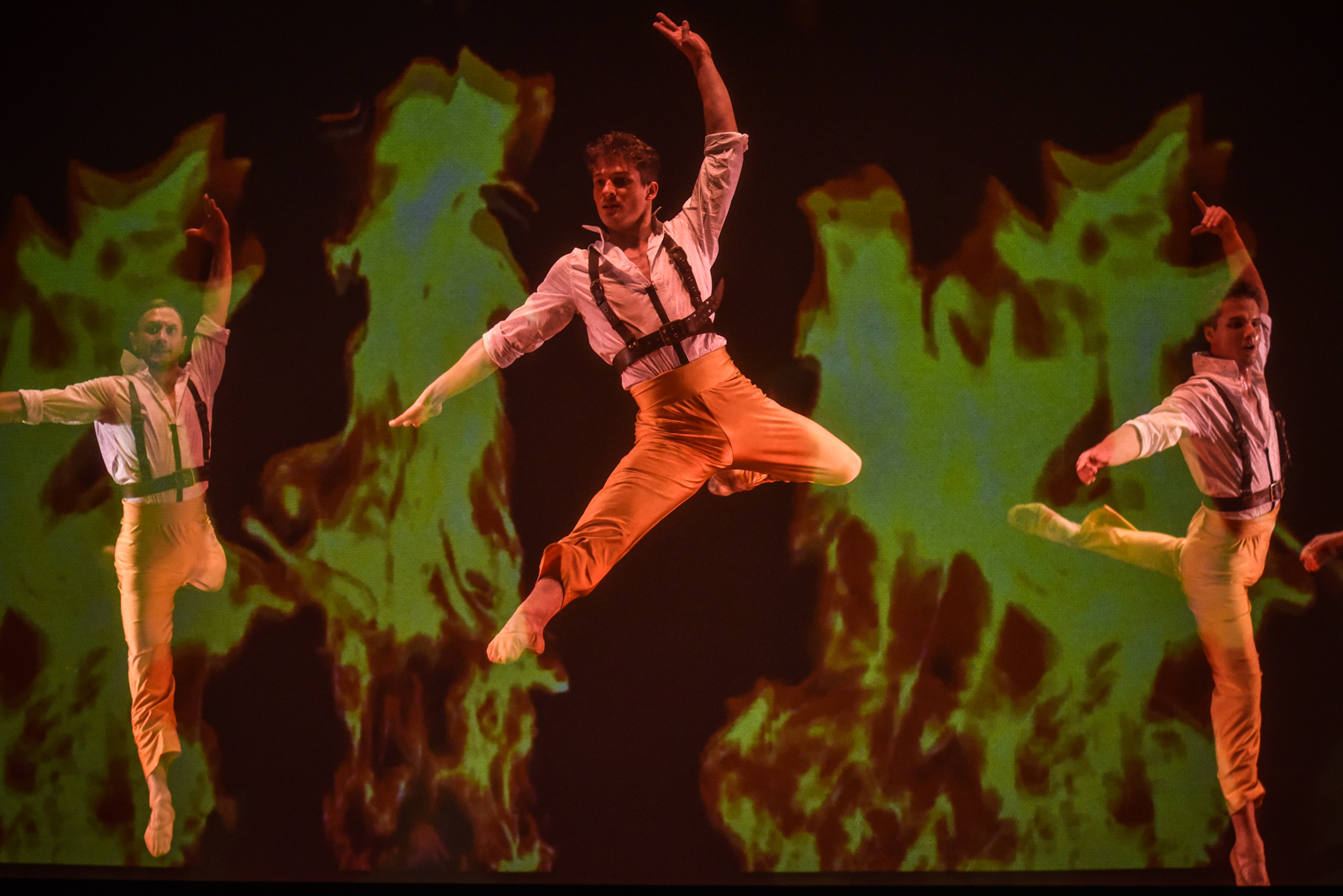 Karmen mylimuosius bei kitus veikėjus įkūnija trys šokėjai.