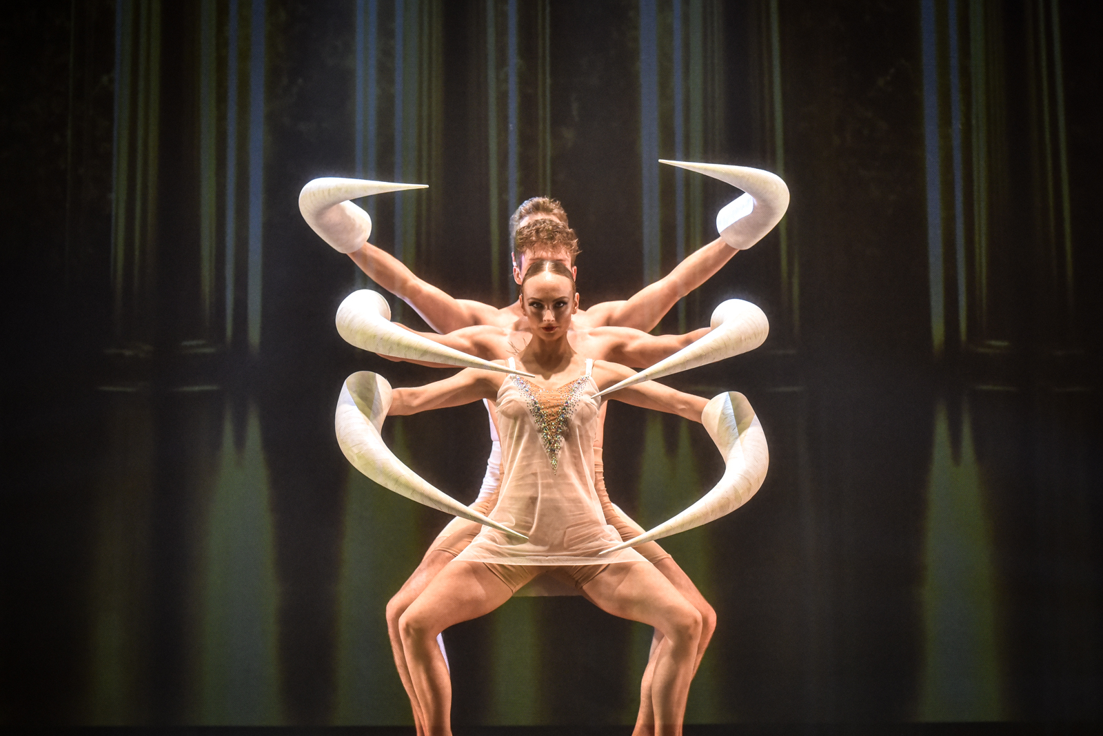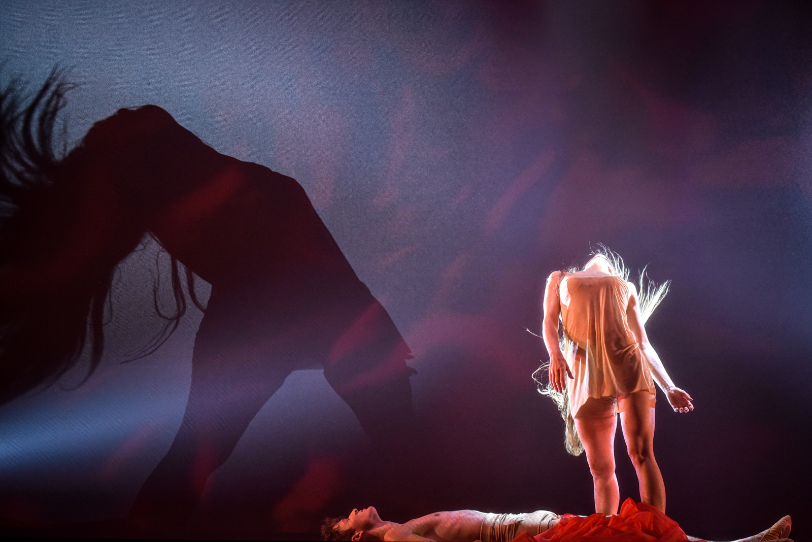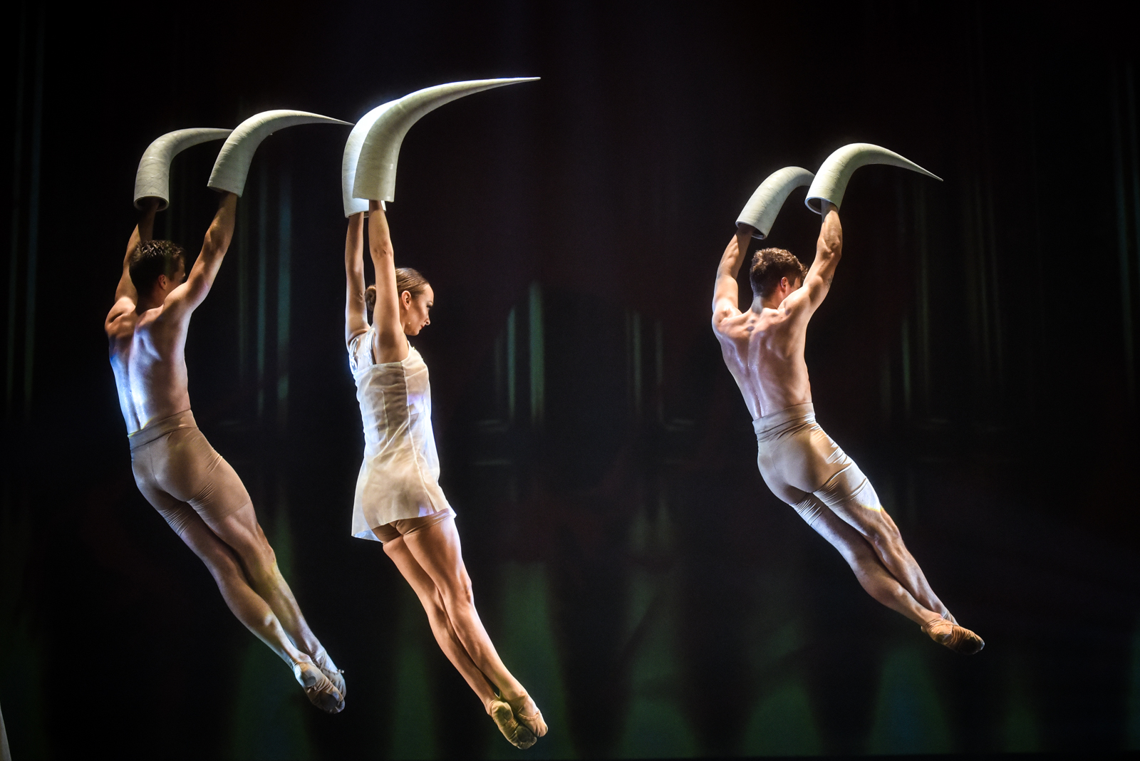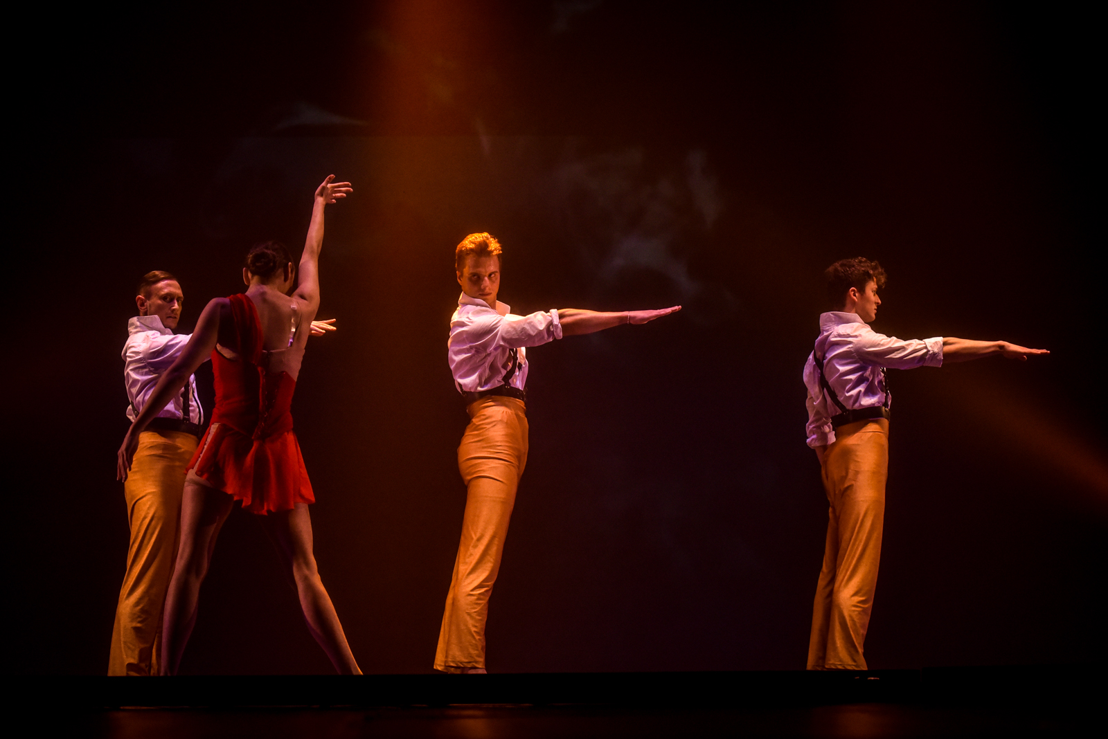 Karmen mylimuosius bei kitus veikėjus įkūnija trys šokėjai.