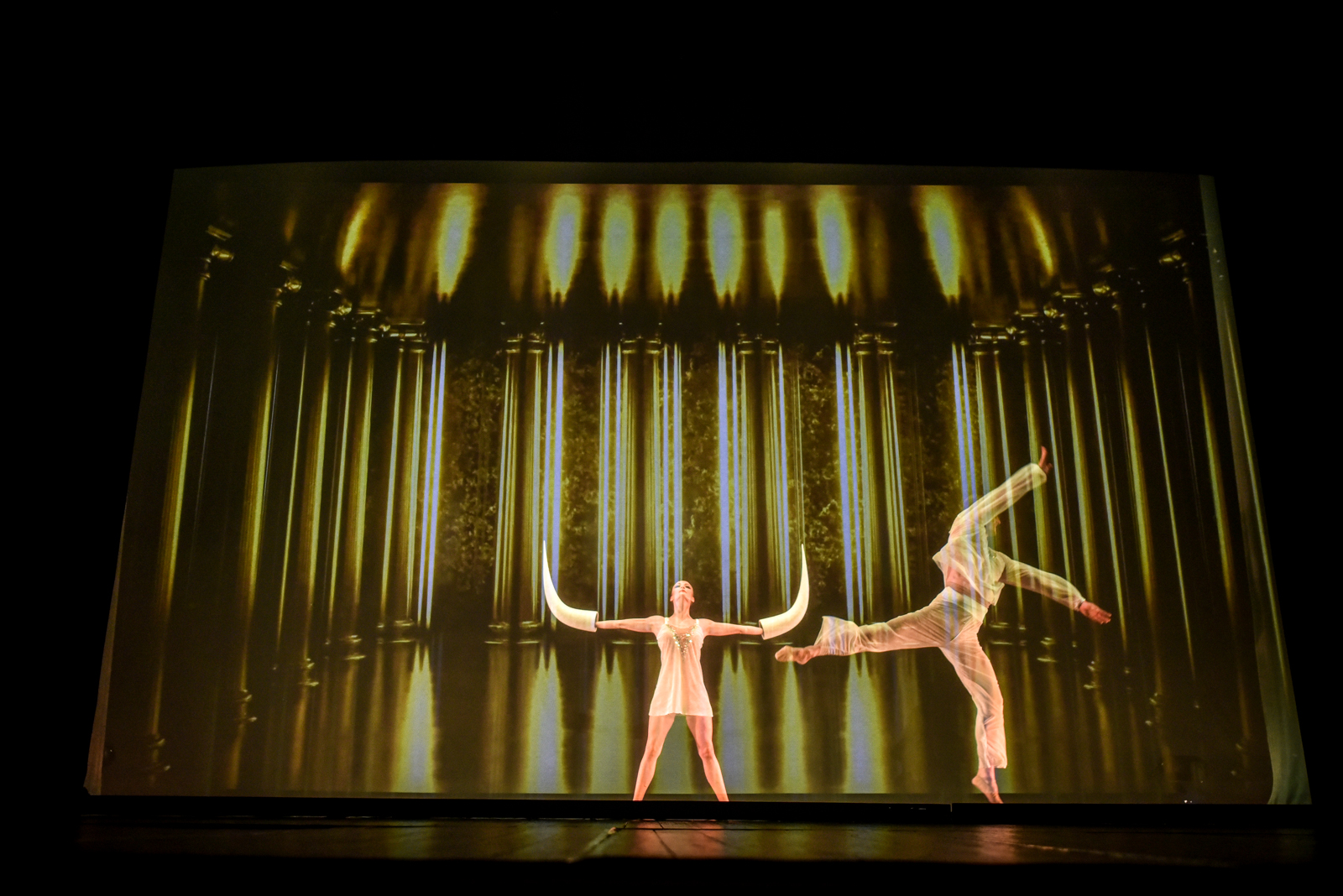 Šokį ir hologramines vaizdo projekcijas M. S. Šimulynaitė derina ne pirmą kartą, šį efektingą reginį galėjo išvysti ir šiuolaikinio baleto spektaklio „Vienatvės armija“ („Army of solitude“) žiūrovai, jame artistai šoko pagal atlikėjos Bjork muziką.