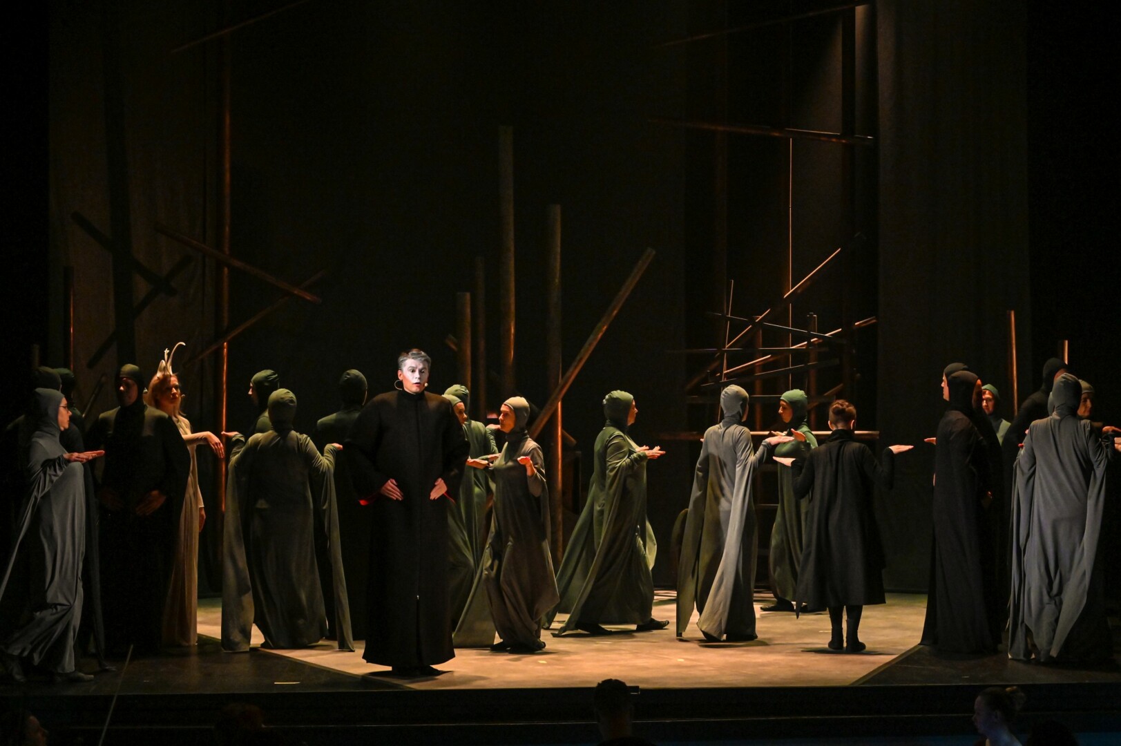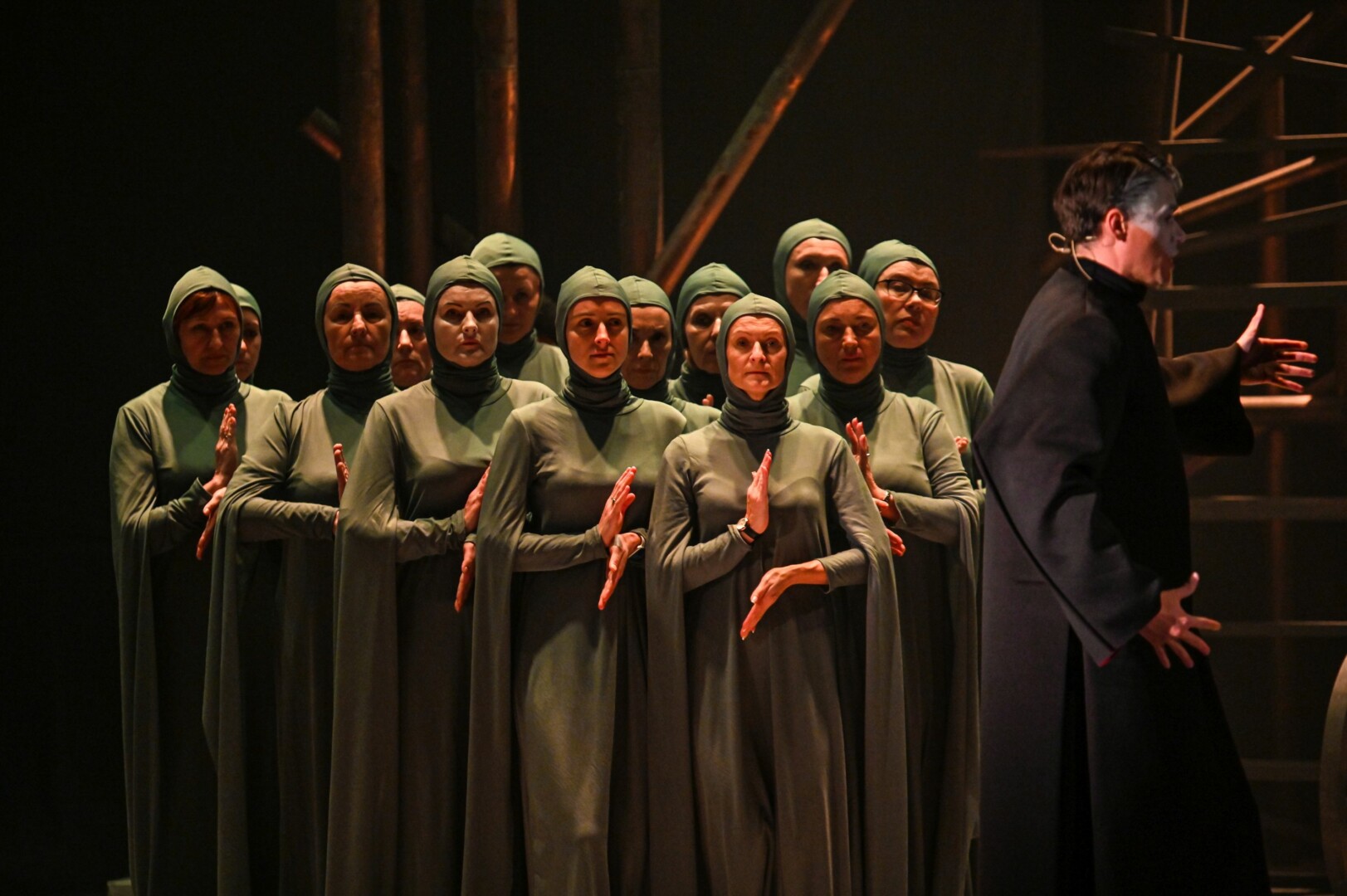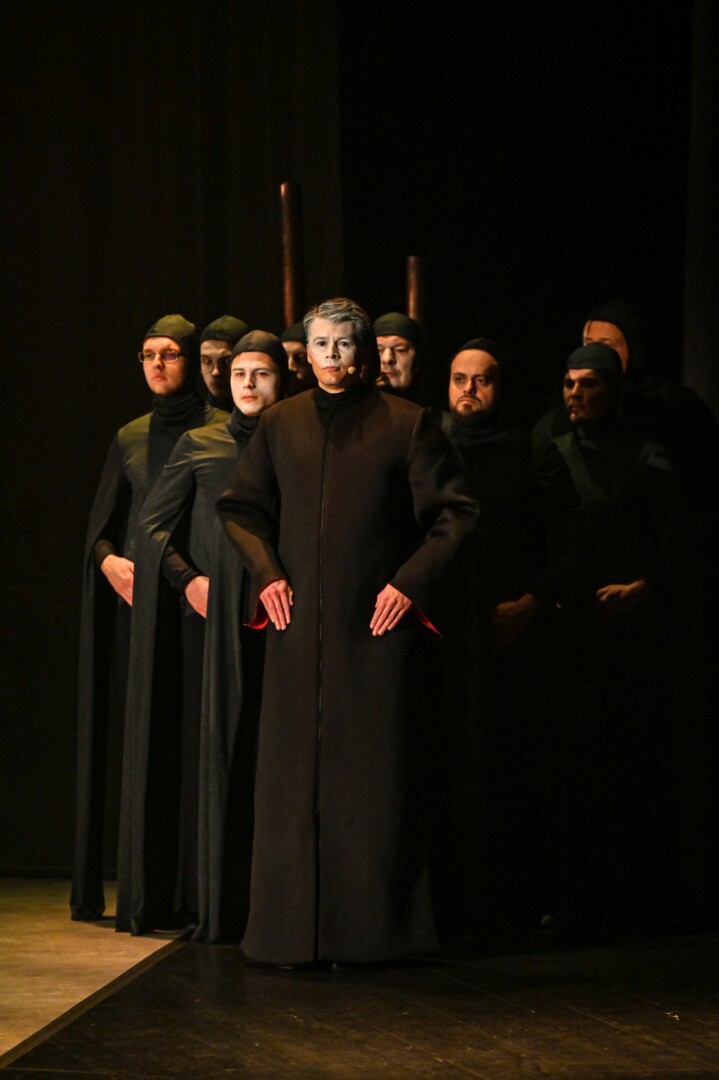 Panevėžio muzikinio teatro scenoje penktadienio vakarą, stebint pilnai žiūrovų salei, po beveik 40 metų pertraukos atgimė Broniaus Kutavičiaus opera-poema „Strazdas – žalias paukštis“.