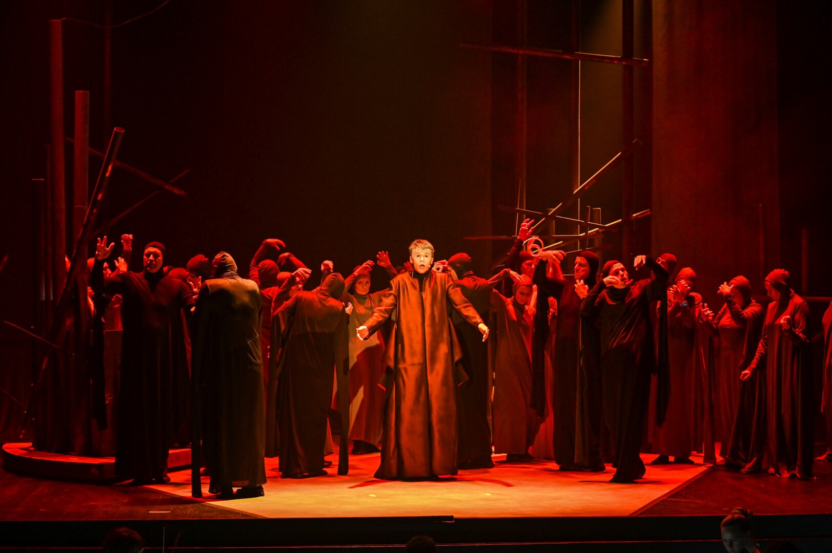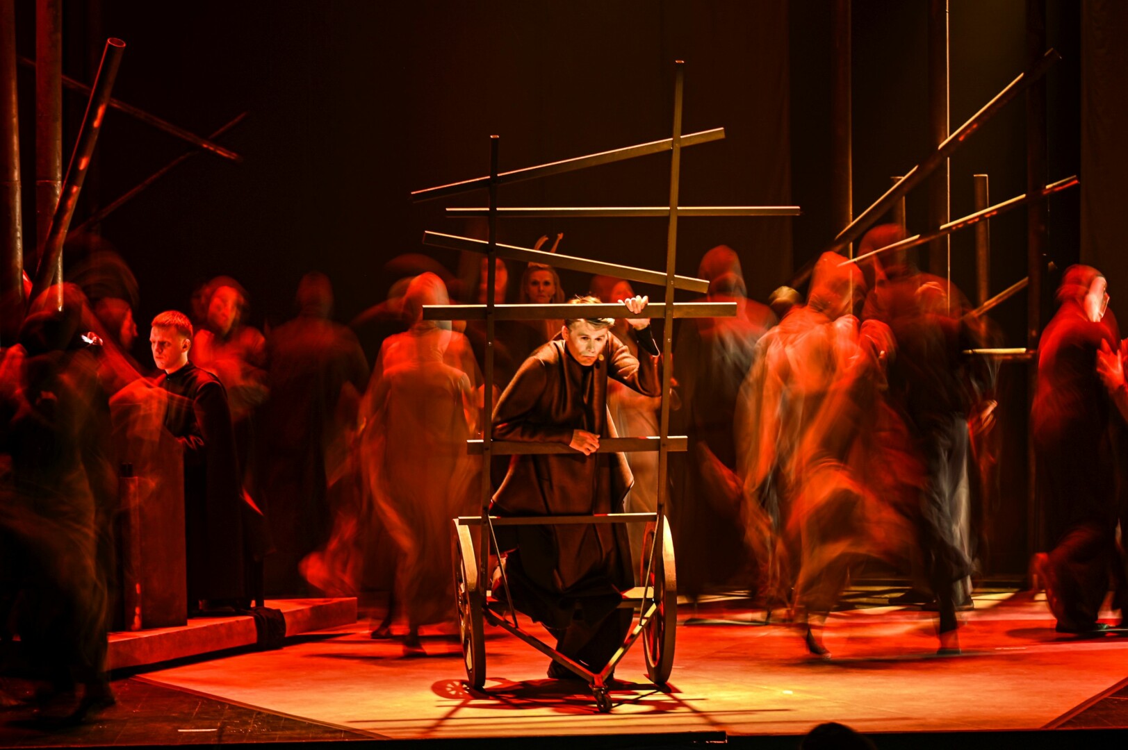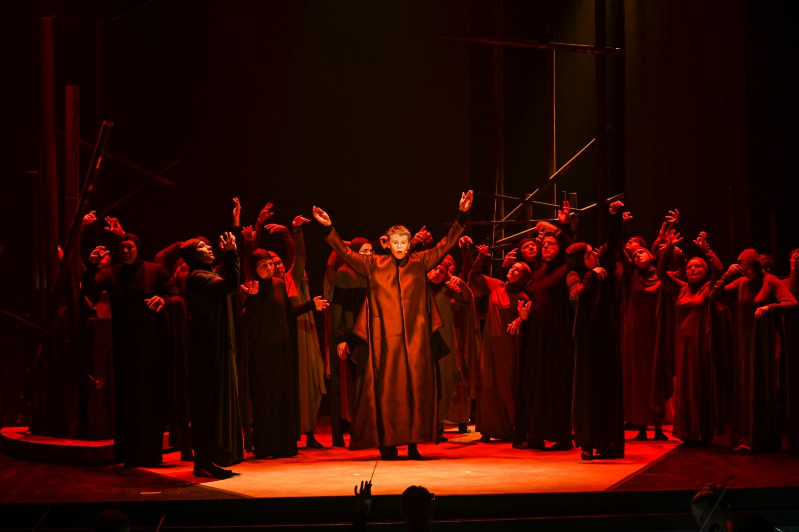 Panevėžio muzikinio teatro scenoje penktadienio vakarą, stebint pilnai žiūrovų salei, po beveik 40 metų pertraukos atgimė Broniaus Kutavičiaus opera-poema „Strazdas – žalias paukštis“.