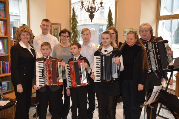 Malonią staigmeną pateikė mokytojų kapela, vadovaujama A. Vinckienės.  Penki kūriniai suteikė daug teigiamų emocijų. Mus visus supo šilta knygyno atmosfera, pilna dėmesingų klausytojų ir lankytojų erdvė. Knygyno šeimininkas A. Paliulis sakė, kad tai buvo „didžiulis, netikėtas malonumas, lyg maratonas, besitęsiantis penkias su puse valandos“.