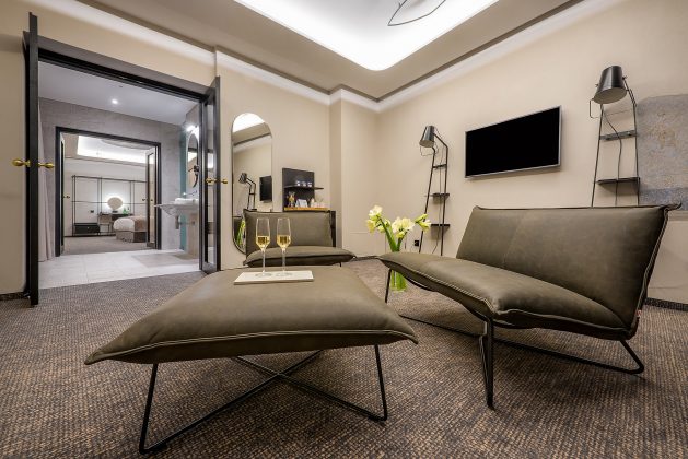 Bendradarbiaujant su architektūros studijos „Plazma“ architektais Evelina Talandzevičiene, Ryčiu Mikulioniu, Dina Sargautiene ir Skirmante Deniušiene, visos naujojo viešbučio idėjos gimė „ne ant popieriaus“, o vietoje, svarstant apie unikalių pastatų rekonstrukciją bei kalbantis su menininkais. „Erdvių charakteristika gana komplikuota: dideli aukščių skirtumai, netaisyklinga patalpų geometrija, – vardija E. Talandzevičienė, – Visa tai sąlygojo stilistinį pasirinkimą ir atidumą istorinių pastatų ypatybėms – jei kreiva, tegul taip ir būna. Su pagarba senamiesčiui stengėmės sujungti sena ir nauja į vieną dermę.“