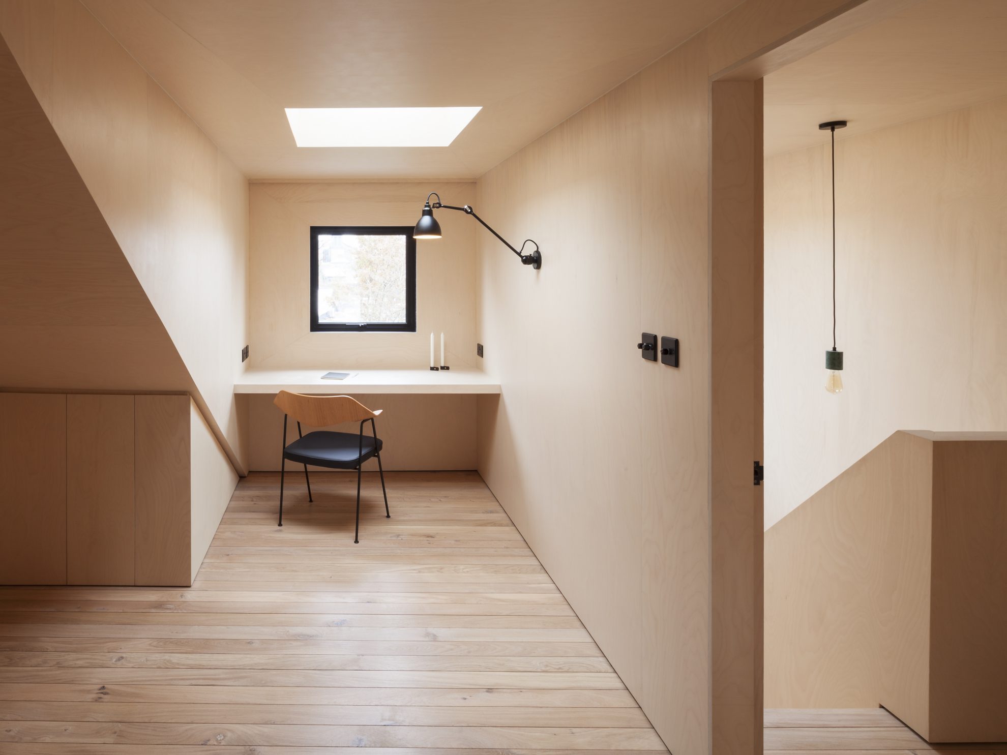 Iki šiol didelė Walthamstow gyvenamųjų namų kvartale esančio namo dalis dėl prasto išplanavimo ir nepatogių lubų buvo praktiškai negyvenama. Po profesionalos rekonstrukcijos namą papildė originalus deginto medžio priestatas su minimalistiniu, iš faneros sukurtu interjeru.