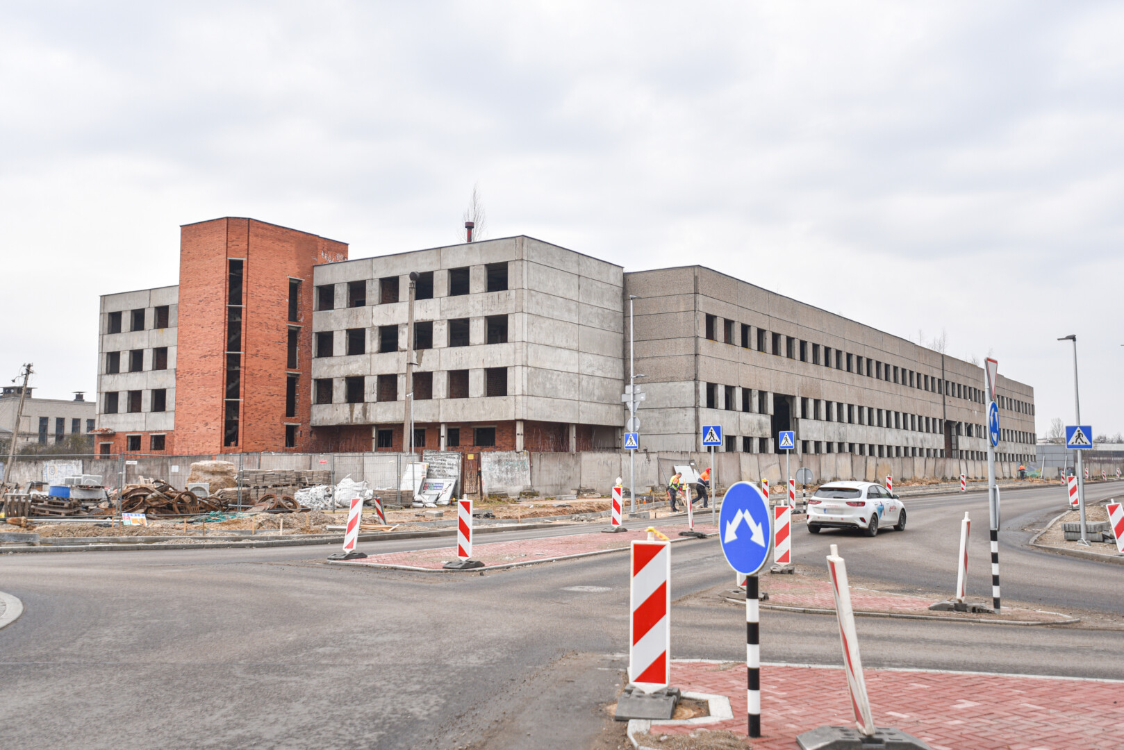 Tačiau bent jau matomų pokyčių ji nepadarė – ties sankryža pastatas iki šiol tebestūkso tuščiomis kiaurymėmis, kur turėjo būti sumontuoti langai ir durys.