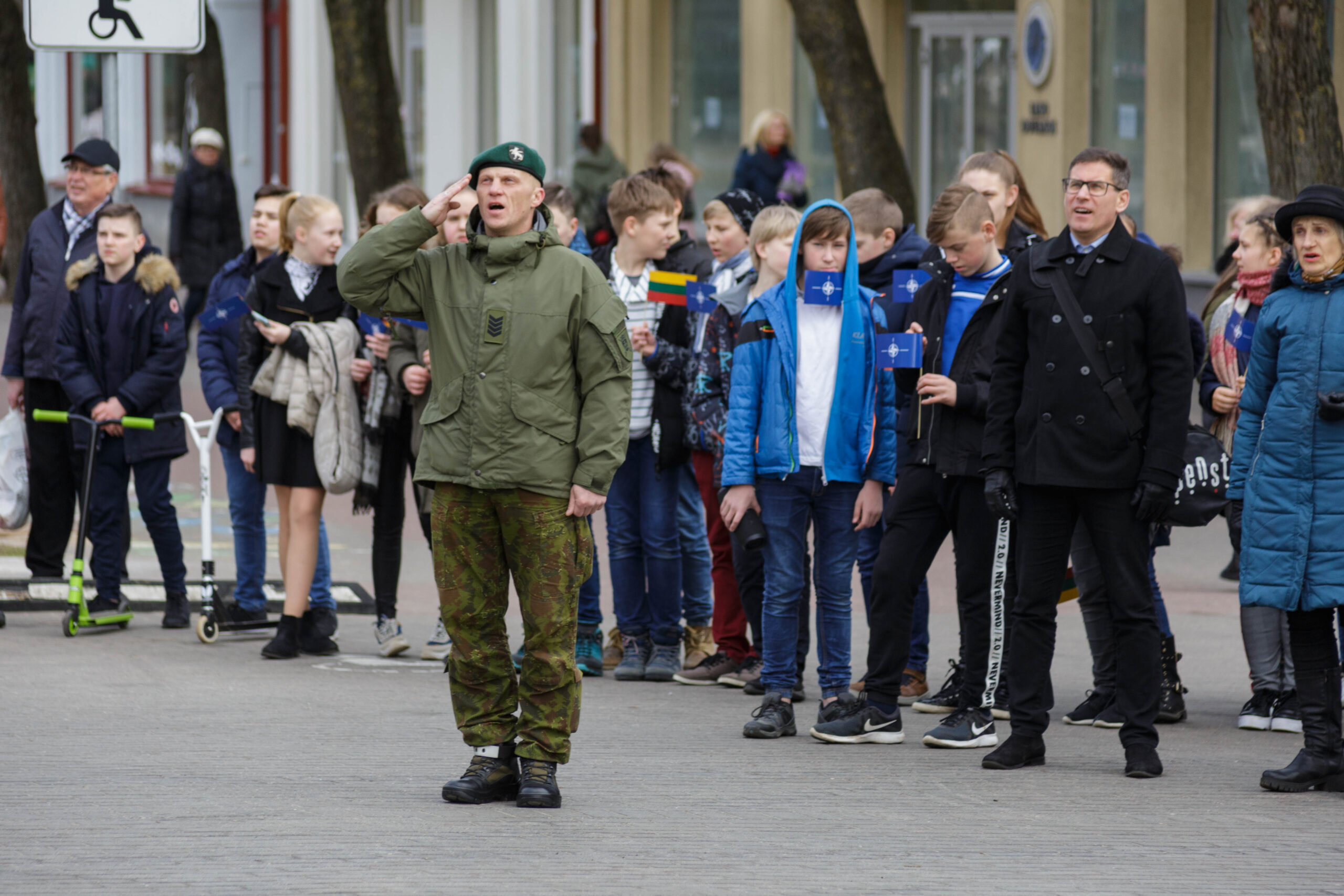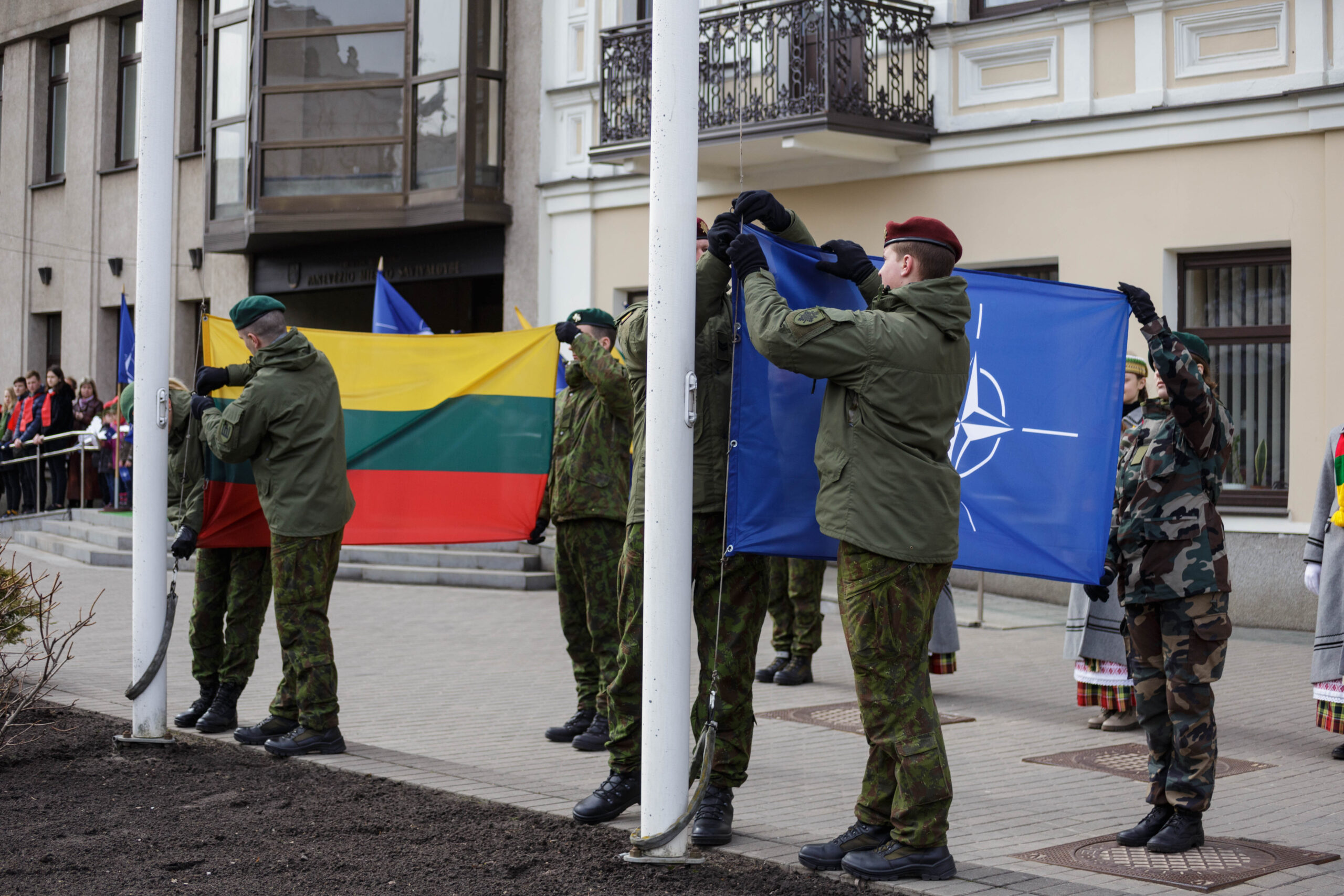 Nuskambėjus karių salvėms už Lietuvą, Lietuvos kariuomenę ir NATO, miesto meras Rytis Mykolas Račkauskas pabrėžė, kad ši diena itin svarbi ne tik Lietuvos, bet kiekvieno mūsų saugumui. Tai pats patikimiausias garantas, kad neliksime vienų vieni, kaip kad buvo praeityje, o pati šalis dar niekada nebuvo tokia saugi.