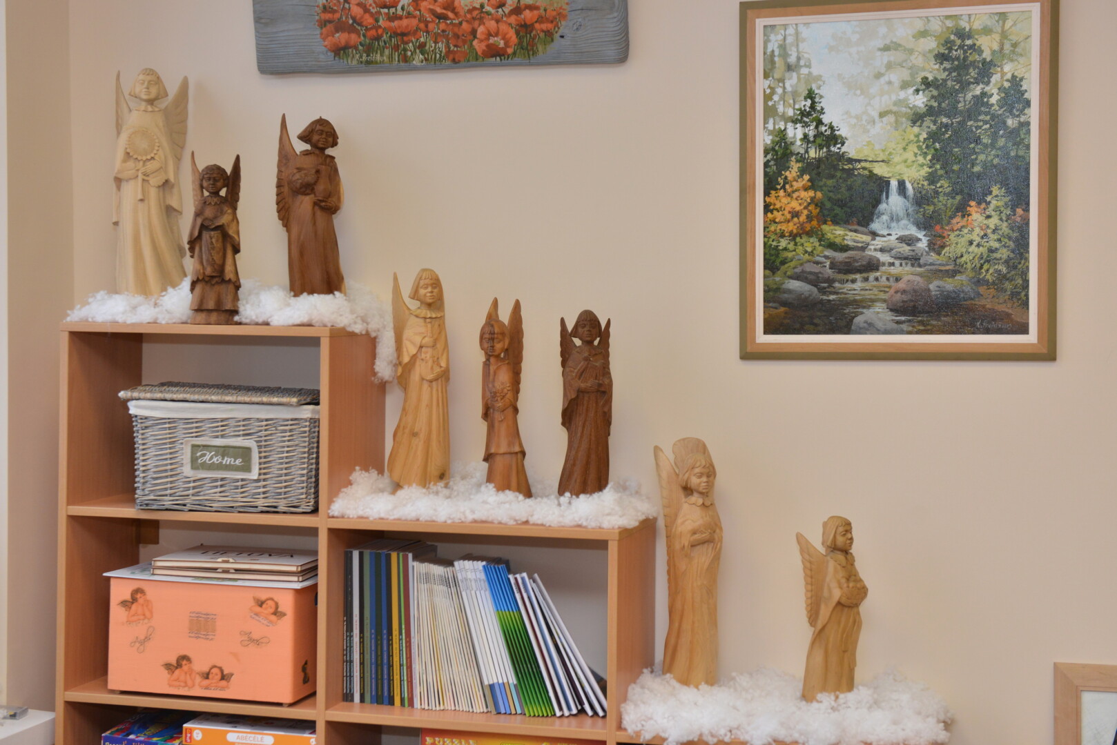 Ne išimtis ir Velžio bibliotekoje išdėstyti angelai – sparnuotosios figūros vien savo buvimu primenančios, kad meilė, tikėjimas, viltis ir gėris yra svarbiausi dalykai kiekvieno mirtingojo gyvenime.