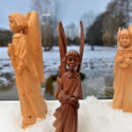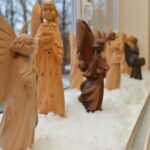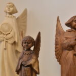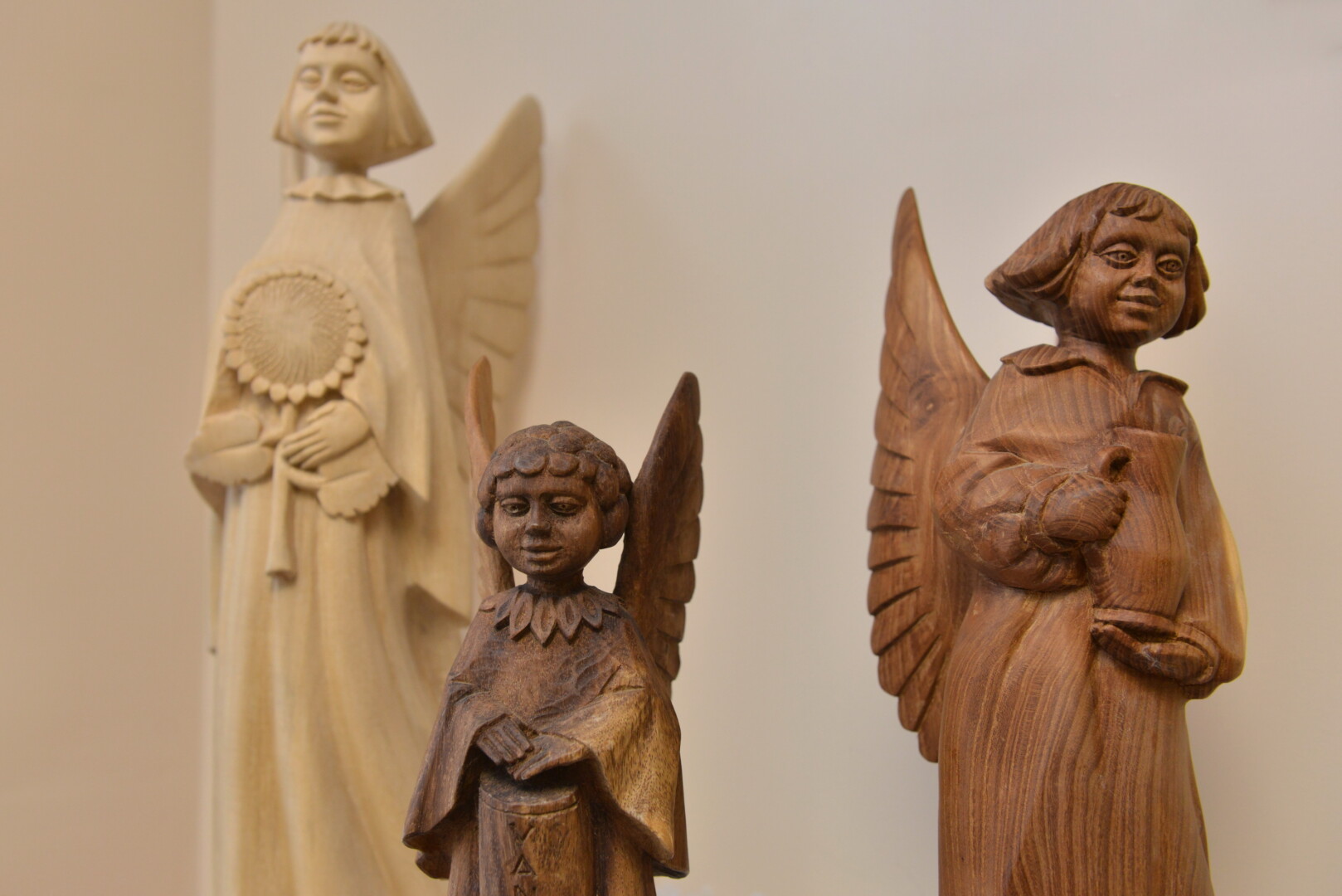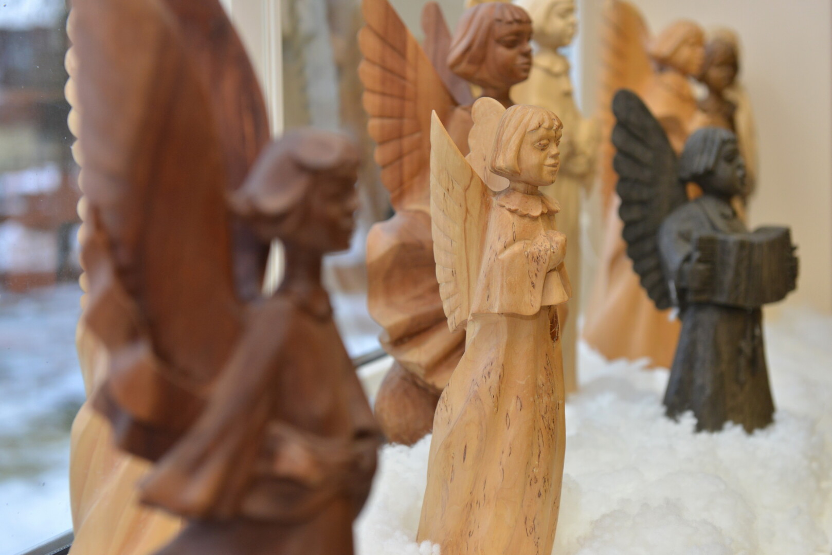 Meistro rankose atsidūrę lietuviško, australiško, portugališko, lenkiško, čilietiško, vengriško bei kitose šalyse augusio medžio gabalai virsta sparnuotais, išraiškingais angelais.