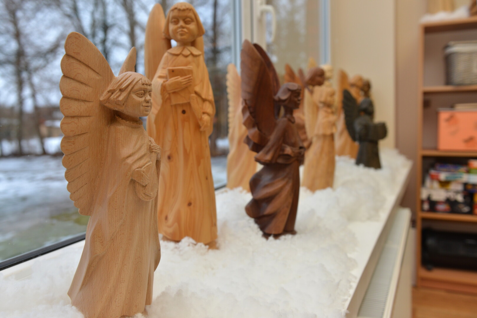 Kiekvieną dieną dirbtuvėse drožinėjantis meistras, be daugybės kitų, monumentalių darbų, visada suranda laiko ir savo ypatingam pomėgiui – angelų drožimui.