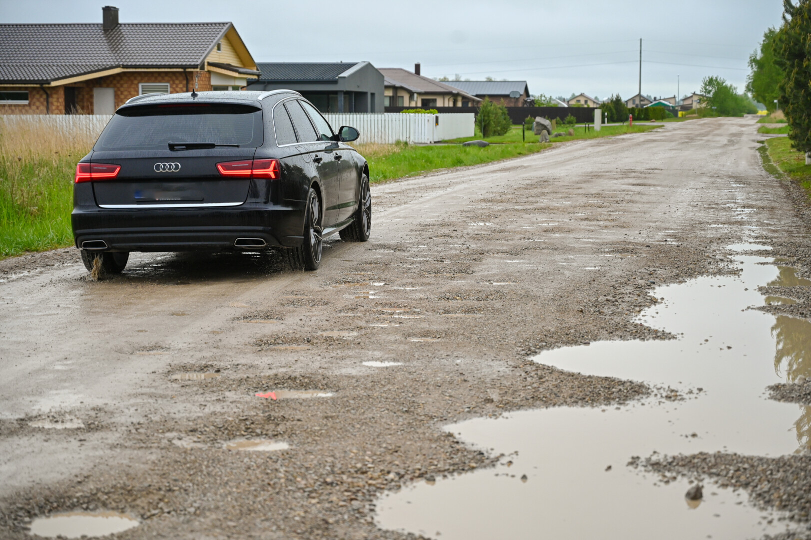 „Šalia gatvės gyvenantieji už savo lėšas ją laisto, patvarko, nes kitaip nebeįmanoma. Pravažiavus automobiliui pakyla dulkių debesis. Dabar palijus duobė prie duobės, jos pilnos vandens – nei eiti, nei važiuoti. Iš Savivaldybės išgirdau, kad patys ir kalti, kam statėmės namus tokioje vietoje“, – kalbėjo Vidmantas.