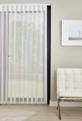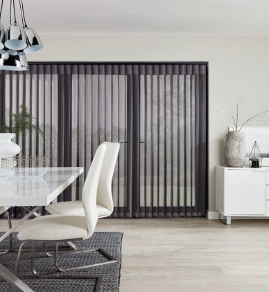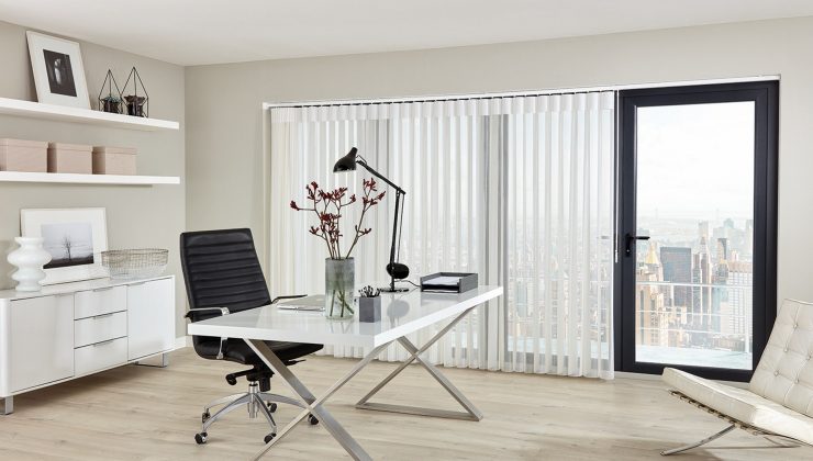 Šios po lengvomis dieninėmis užuolaidomis gulančios vertikalios žaliuzės pakelia modernių namų dekorą ir stilingų biurų langų dengimą į naują lygmenį. Tai paprastas būdas erdvei suteikti naują stilių.