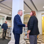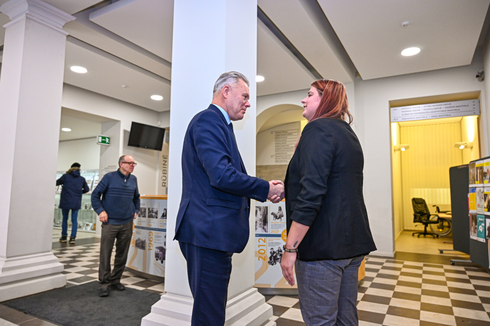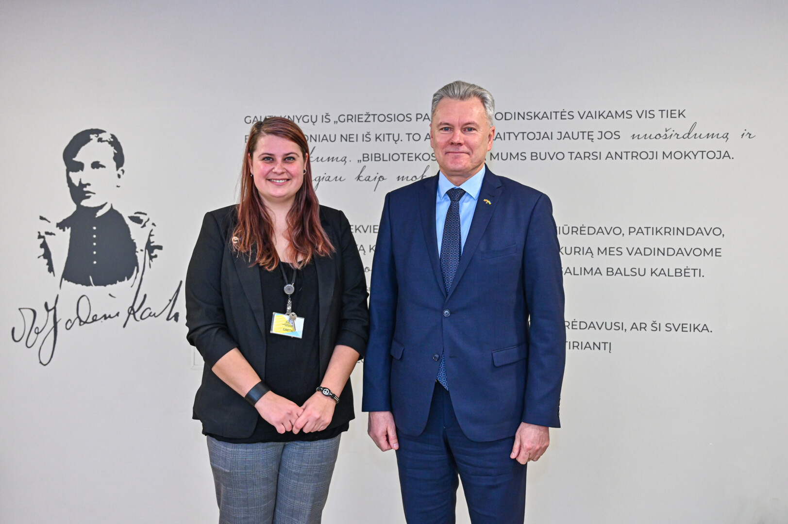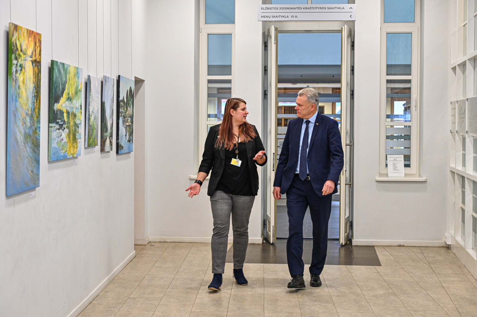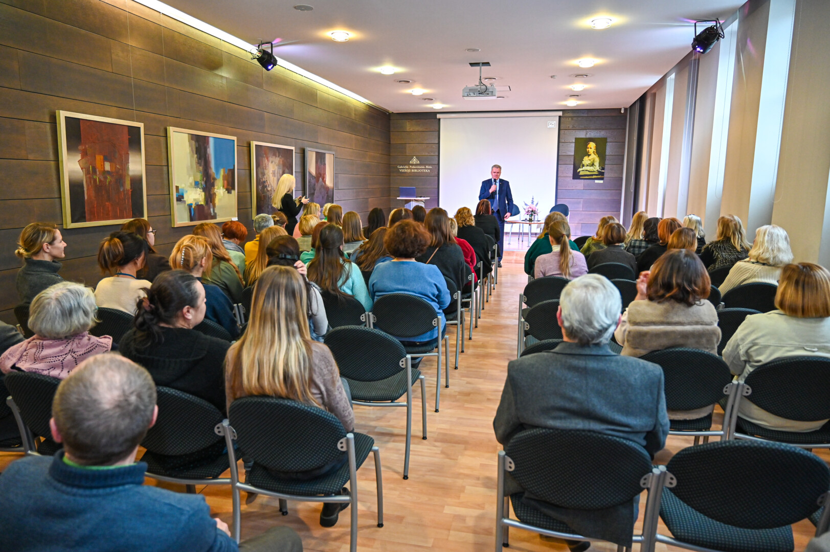 Naujosios direktorės pristatyti bibliotekos kolektyvui atvyko kultūros viceministras Rimantas Mikaitis.