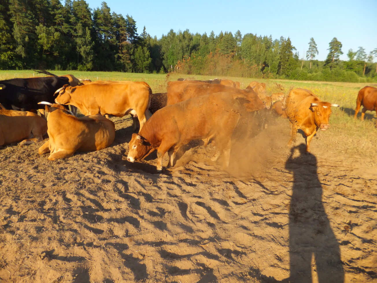 Juokaujama, kad ūkininkai būna pririšti prie karvės uodegos – visas jų laikas derinamas prie galvijų dienos režimo, kurį įrėmina melžimas. Kiek daugiau nei dvylika metų ūkininkaujantis R. Jasiūnas dar besimokydamas Panevėžio žemės ūkio ir hidromelioracijos mokykloje iš dėstytojos išgirdo, jog vakariečiai karvių nebemelžia. Tąkar tik nusistebėjo tokiu neišmanymu ar net tinginyste, tačiau dabar ir paties valdose ganosi devynios dešimtys jautukų ir telyčaičių, auginamų ne pienui, o mėsai. Maždaug pusė bandos – grynaveisliai limuzinai, o kita dalis – limuzinų mišrūnai.