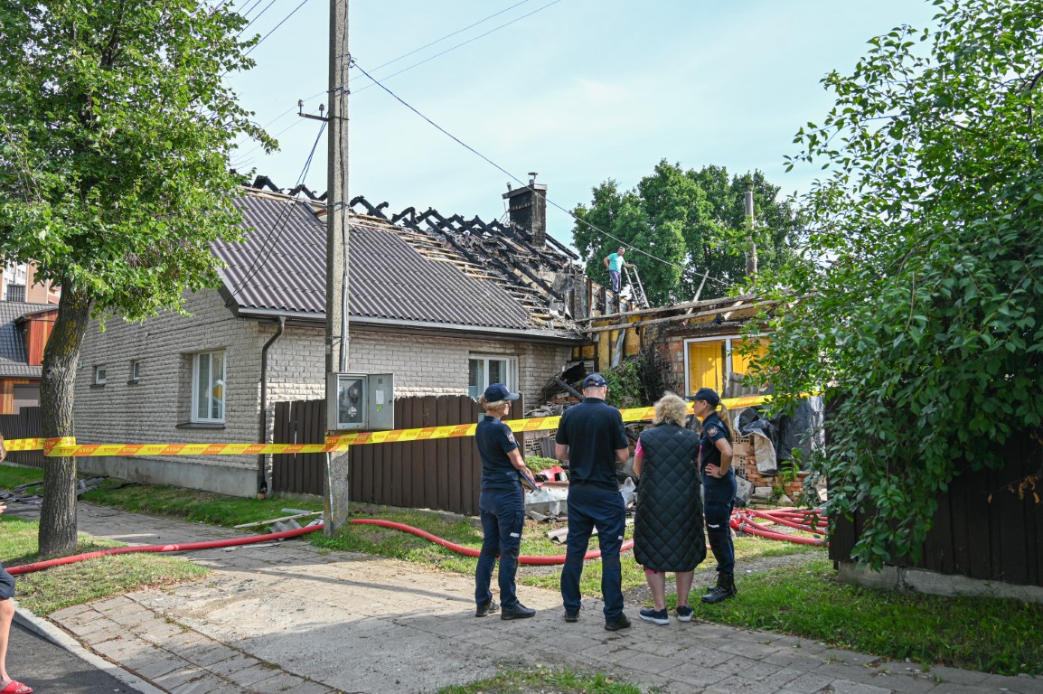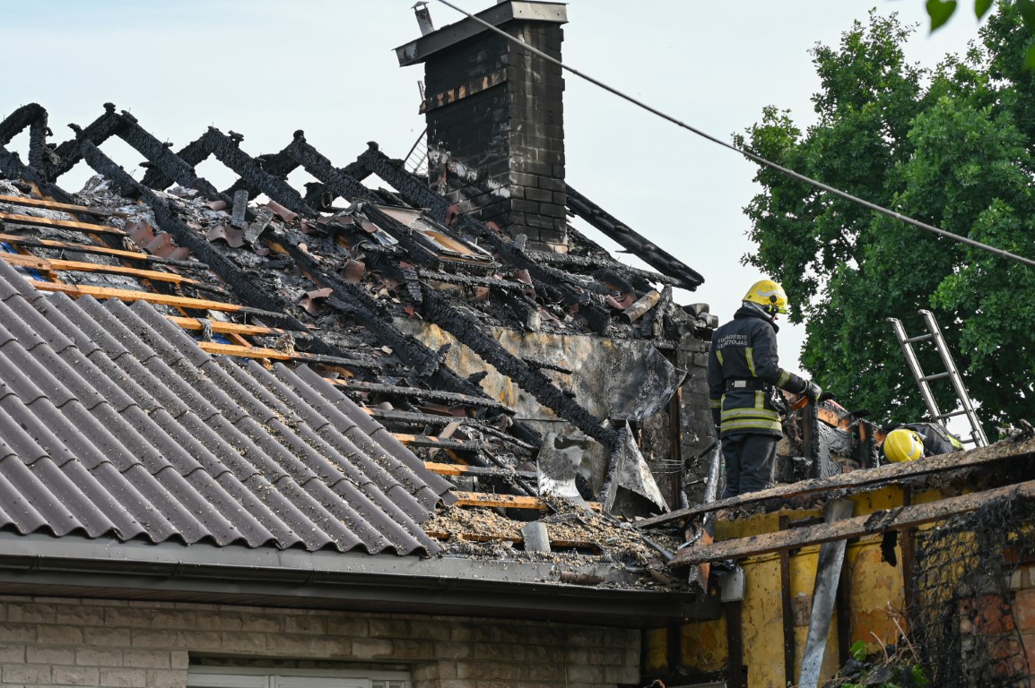Pirminiais duomenimis, per gaisrą žmonės nenukentėjo, tačiau dviem savininkams priklausantis namas gerokai apdegė.