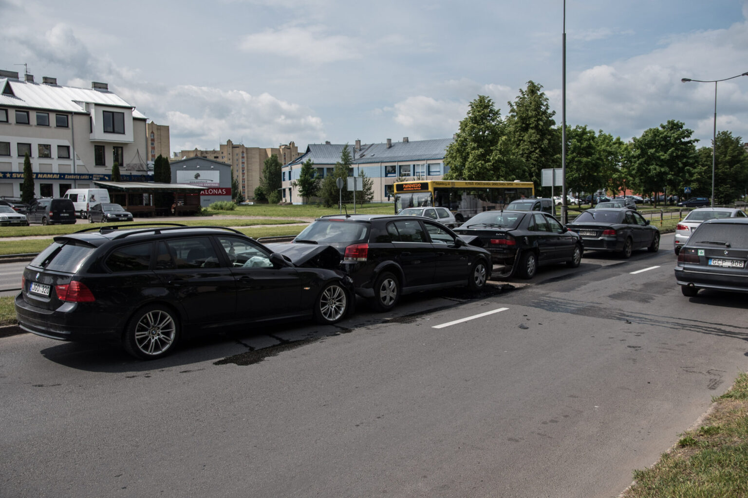Penktadienį prieš pietus Klaipėdos gatvė tapo sunkiai išvažiuojama – susidūrus net septyniems automobiliams, susidarė didžiulės spūstys.