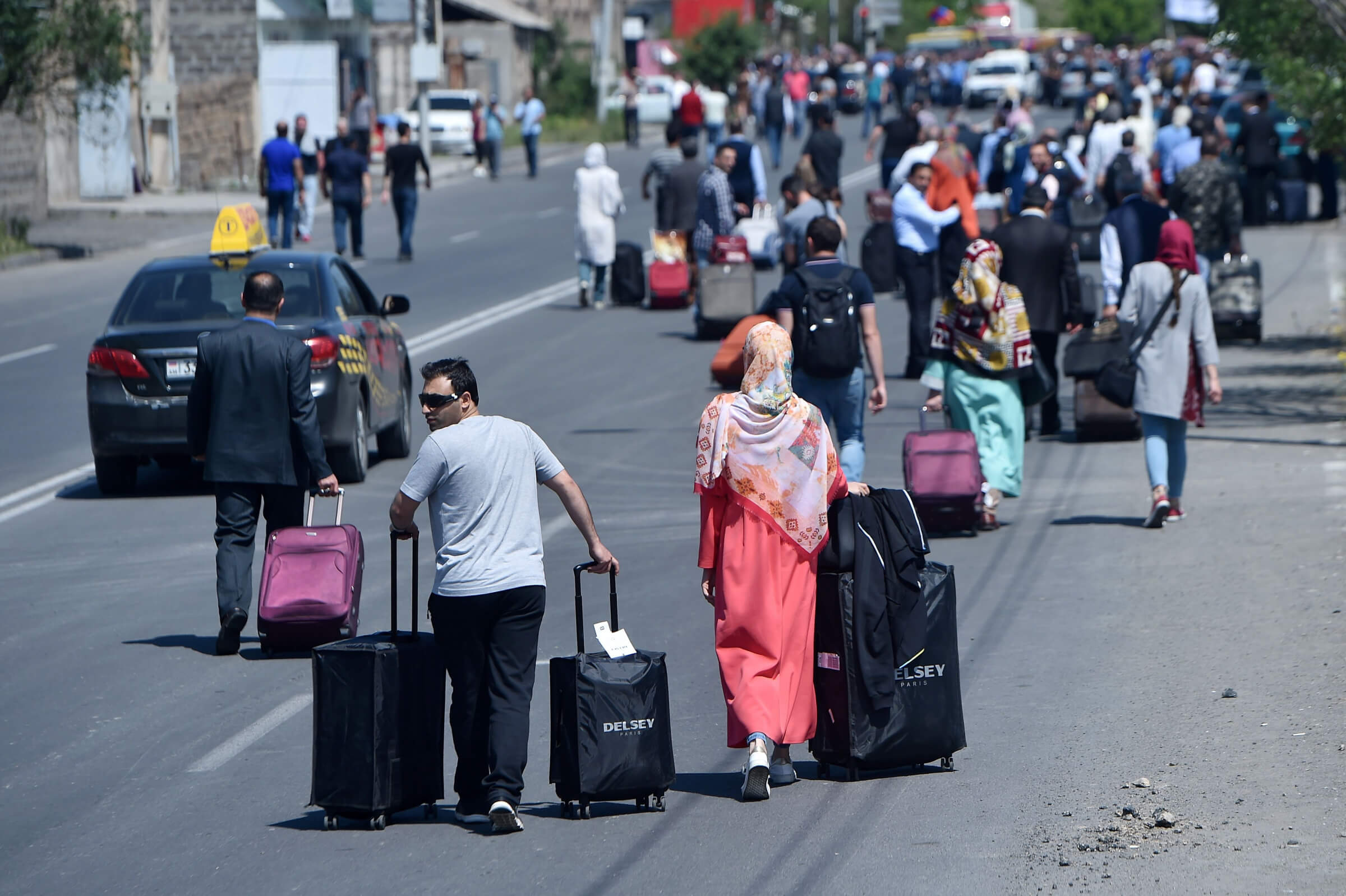 Visuose Jerevano rajonuose gyventojai prisidėjo prie opozicijos protestų lyderio Nikolo Pašiniano paskelbto visuotinio streiko ir kelių blokavimo. Taip pat šalyje sustabdytas traukinių eismas, naujienų agentūrai „Interfax“ pranešė bendrovės „Pietų Kaukazo geležinkelis“ spaudos tarnyba. „Neveikia visa geležinkelių sistema“, – nurodė atstovas spaudai Vardanas Alojanas.