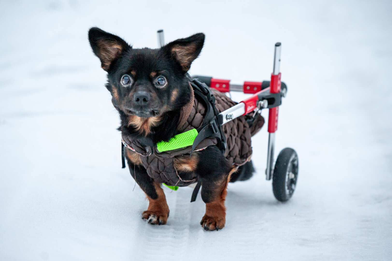 Globėjos teigimu, keturkojis elgiasi kaip normalus laimingas šuo, tik nevaldo užpakalinių kojyčių.