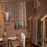 Tradicinių amatų centre esančiomis staklėmis audžiamos spalvingos lietuviškos juostos.