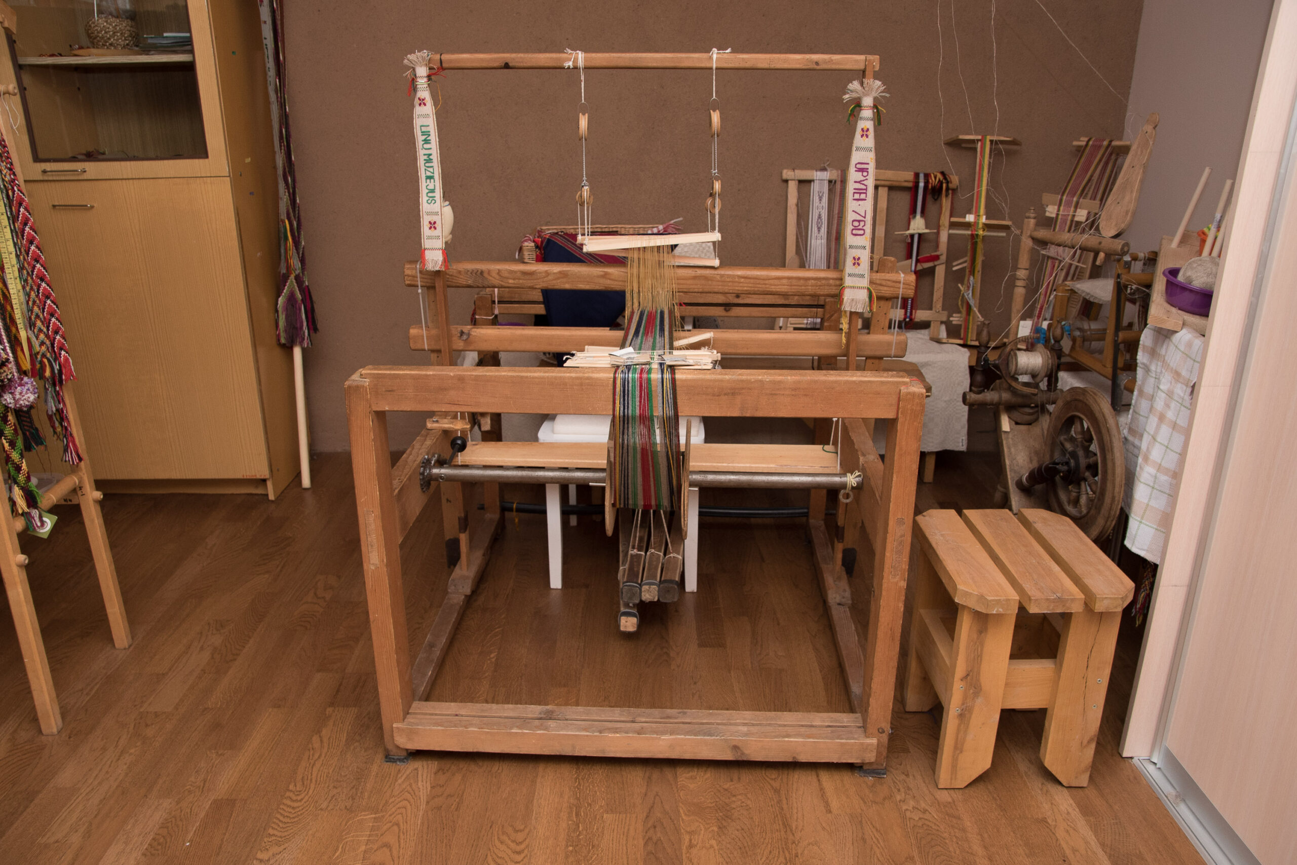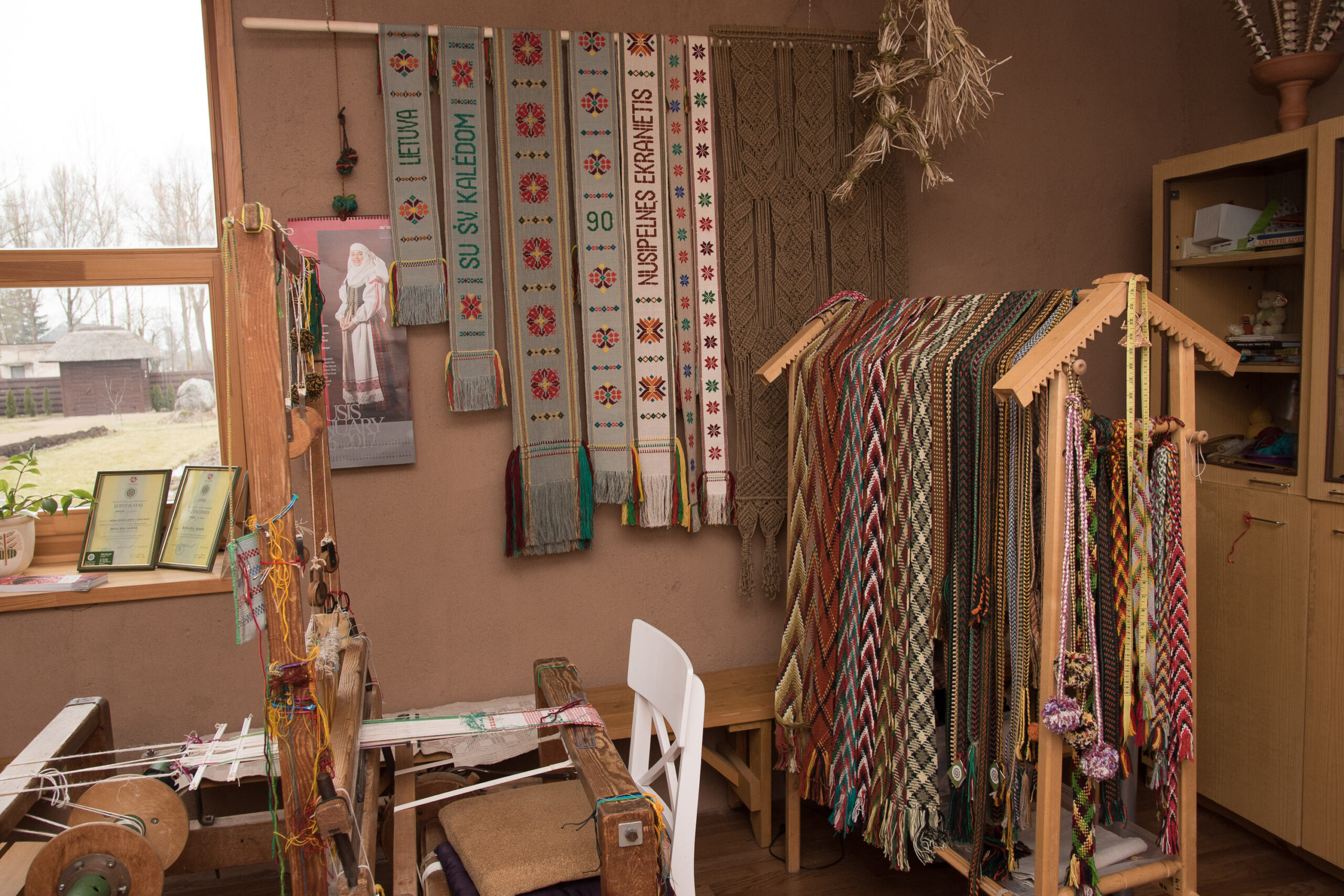 Tradicinių amatų centre esančiomis staklėmis audžiamos spalvingos lietuviškos juostos.