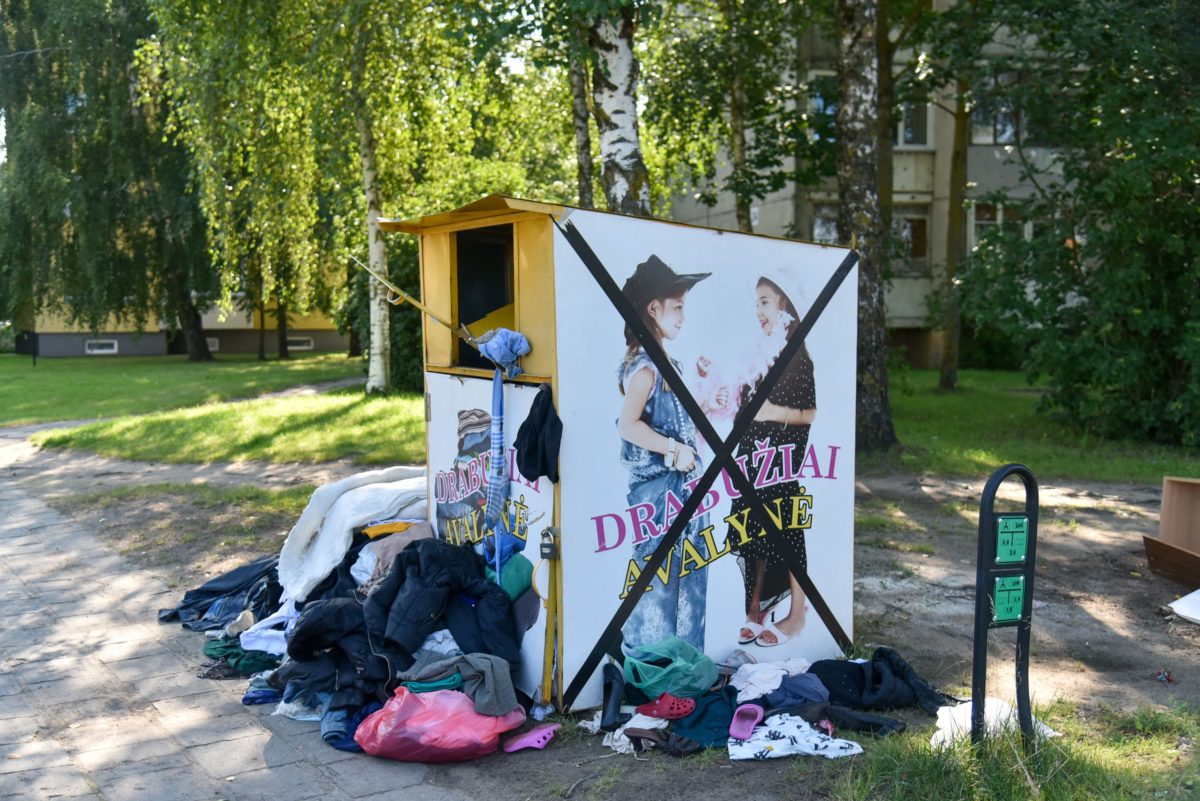 Kaip pasakojo savo vardo viešinti nepanoręs Ateities gatvės gyventojas, geltonieji konteineriai, skirti labdaros drabužiams bei avalynei, netoli Ateities gatvės 24-ojo daugiabučio stovi jau ne vienerius metus, bet iki šios vasaros bėdų nebuvo. Jie reguliariai kas kelias savaites būdavo ištuštinami.