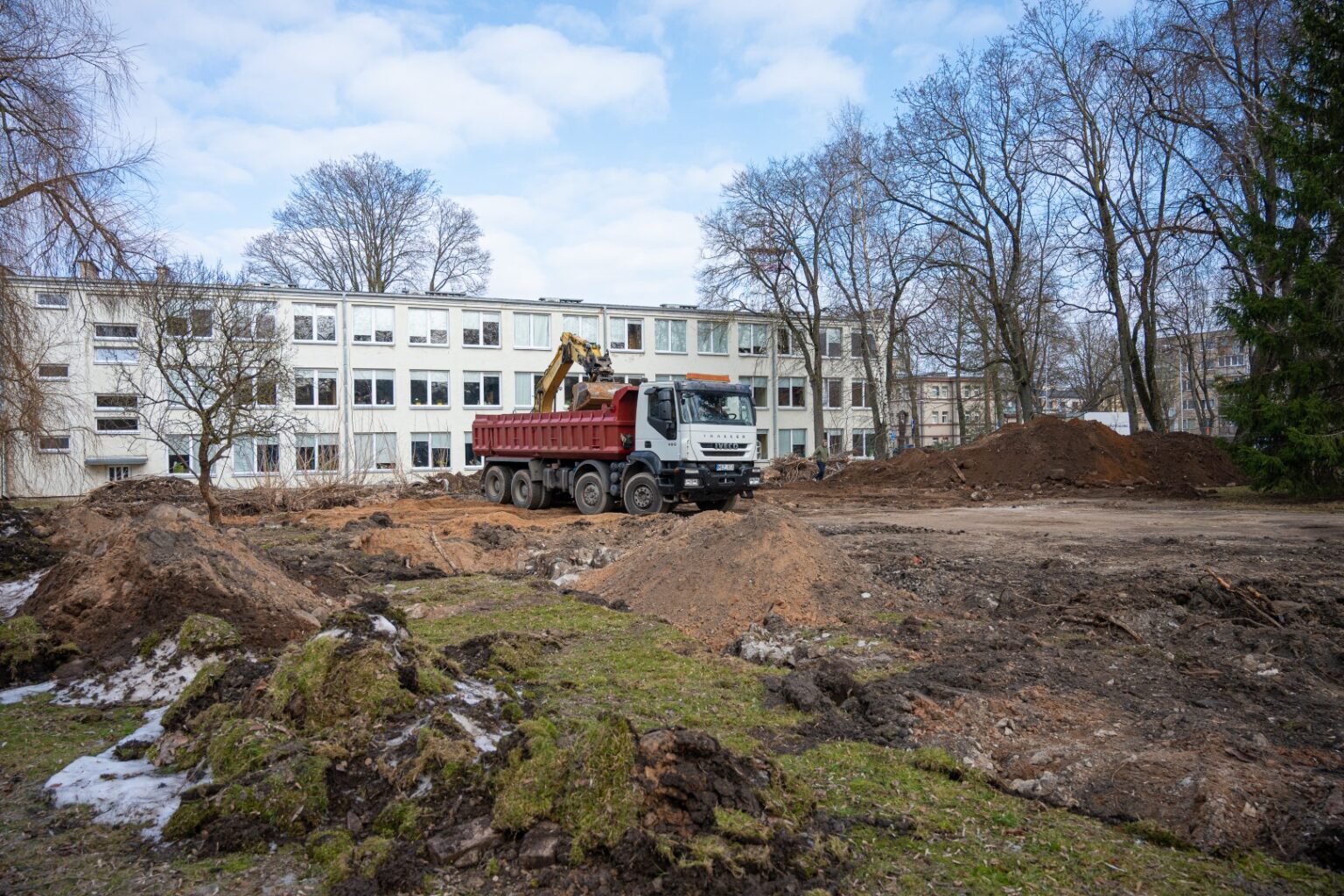 Panevėžio centre, Juozo Balčikonio gimnazijos pašonėje, dar tik įsibėgėjančios trijų aukštų daugiabučio statybos jau kelia klausimų.