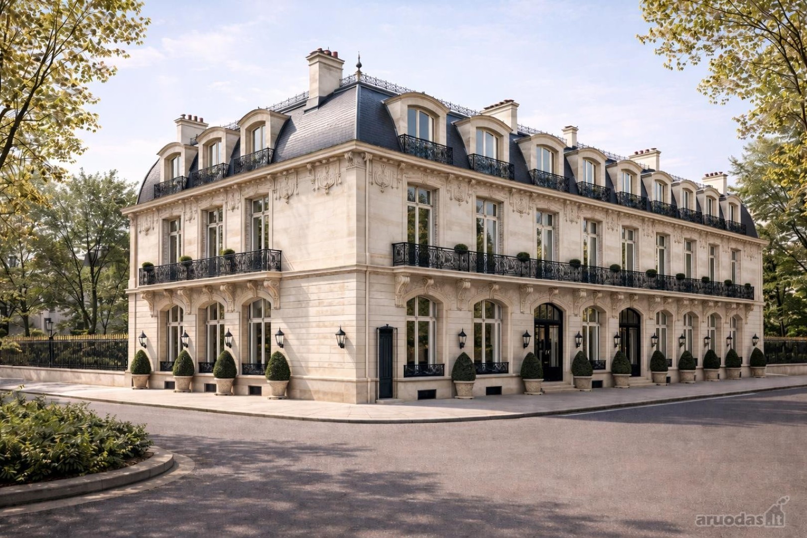 Potencialių pirkėjų akį traukia skelbime pateikta įspūdinga vizualizacija – trijų aukštų neogotikinio stiliaus pastatas, išsiskiriantis dekoratyviu, detalių turtingu fasadu.