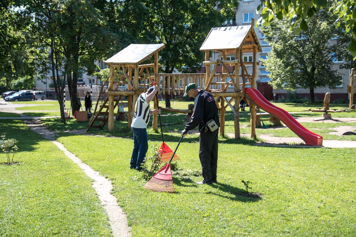 Vasarą pagalbininkai dažniausiai grėbia žolę, sodina, laisto bei prižiūri gėlynus, tik pernai metais pasodintą serbentyną, renka šiukšles. Rudenį daugiausia darbo rankų reikia vaduoti iš krentančių lapų jūros, o žiemą – kasti sniegą. Su kiekvienu talkininku yra atskirai suderinamas darbo grafikas, sudaroma darbų saugos sutartis. Dirbančiuosius prižiūri ir darbus paskirsto bendruomenės savanorė. Ji taip pat išduoda darbo įrankius bei priemones.