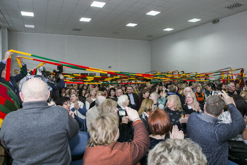 Uždėjus šaliką ant visų renginio dalyvių, ne vieno jų akyse pasirodė ašaros. O tokią akimirką širdis dar labiau jaudino skambėjęs himnas Lietuvai: Tautišką giesmę su visais traukė į šventę kviestas dainininkas Deividas Norvilas.