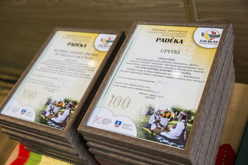 Į renginį atvykusiems mezgėjams projekto organizatoriai įteikė padėkos dovanėles. Geležių bendruomenės moterys primezgė krūvą mažų į kamuoliukus susuktų tautinių šalikėlių. Vienas trispalvis šalikas specialiai sukurtas Panevėžio rajono merui Povilui Žaguniui už jo dėmesį šios iniciatyvos pradžioje.