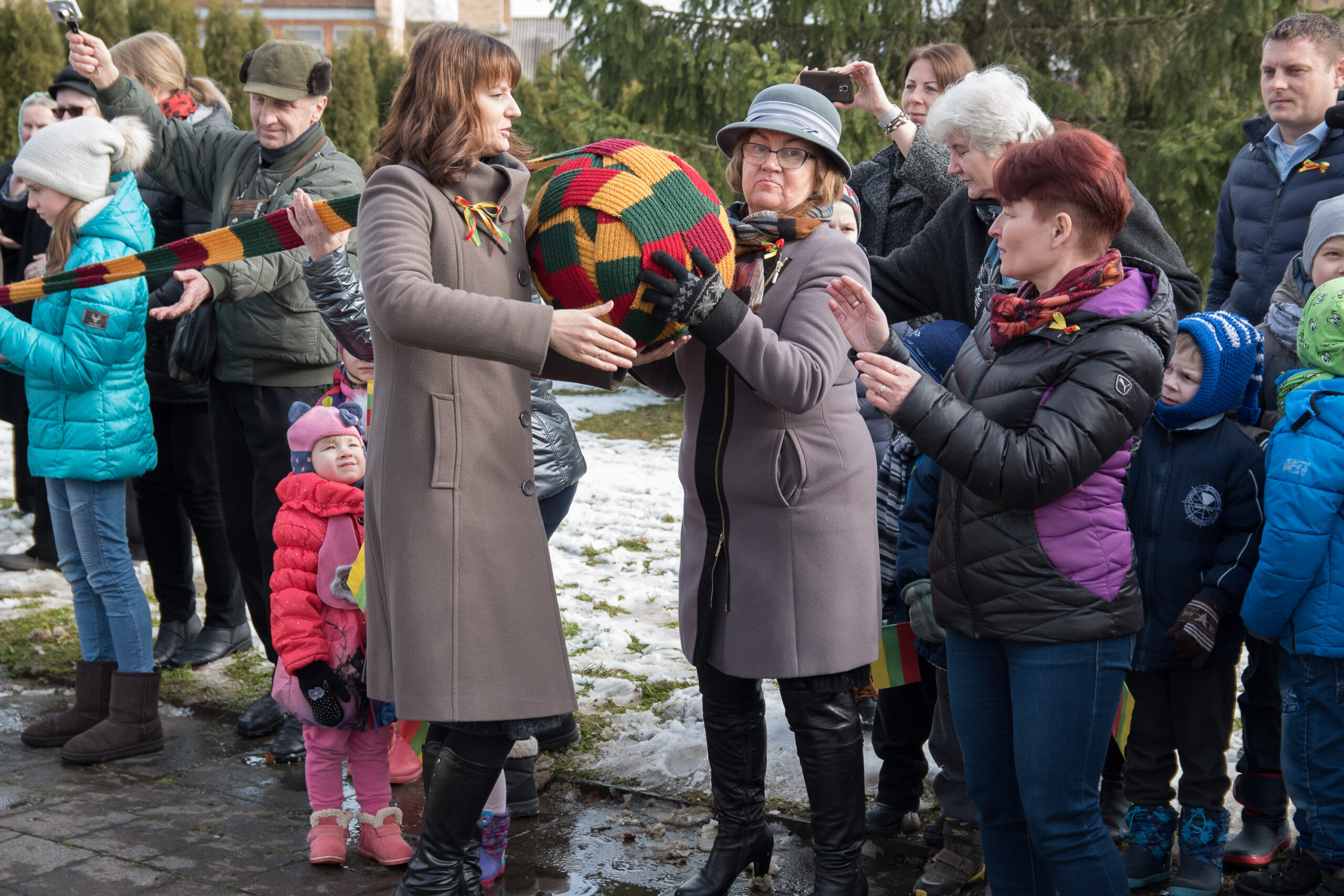 „Žiūrint į mezginį galima pastebėti, jog į jį sumegzta įvairių atspalvių trispalviai siūlai. Taip pat matosi ir mezgimo stilių skirtumai – vienų raštas tvirtesnis, kitų minkštesnis. Gal dėl to šalikas net ir gražesnis – juk kiekviena šeima į mezginį sudėjo savo šilumos, nuotaikos kruopelytę“, – kalbėjo mezgėjos.