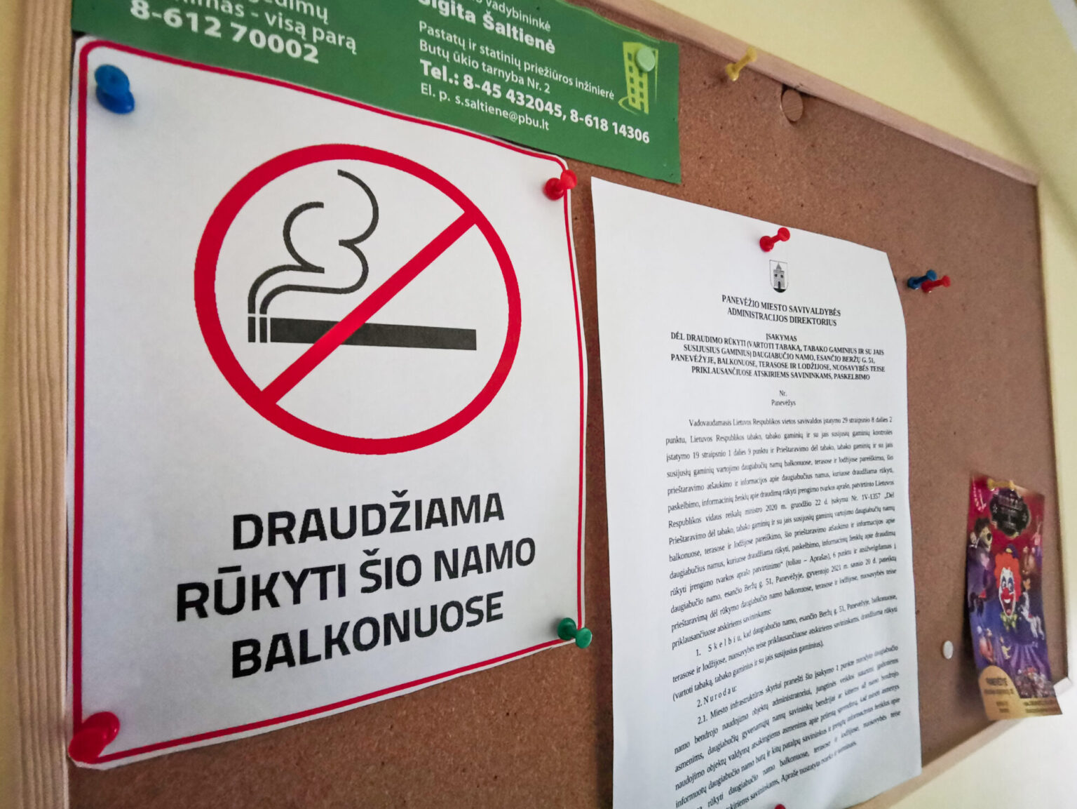 Panevėžyje jau kone keturios dešimtys daugiabučių pažymėti specialiais ženklais, įspėjančiais, jog jie paskelbti nerūkymo zonomis. Spėta gauti ir skundų dėl užtraukusių dūmą neleistinoje vietoje, bet Savivaldybė kol kas nėra nubaudusi nė vieno. Be tabako tvaiko bandančių gyventi panevėžiečių patirtis labai skirtinga: vienuose daugiabučiuose dūmai išsisklaidė, kituose kaimynai susipyko.