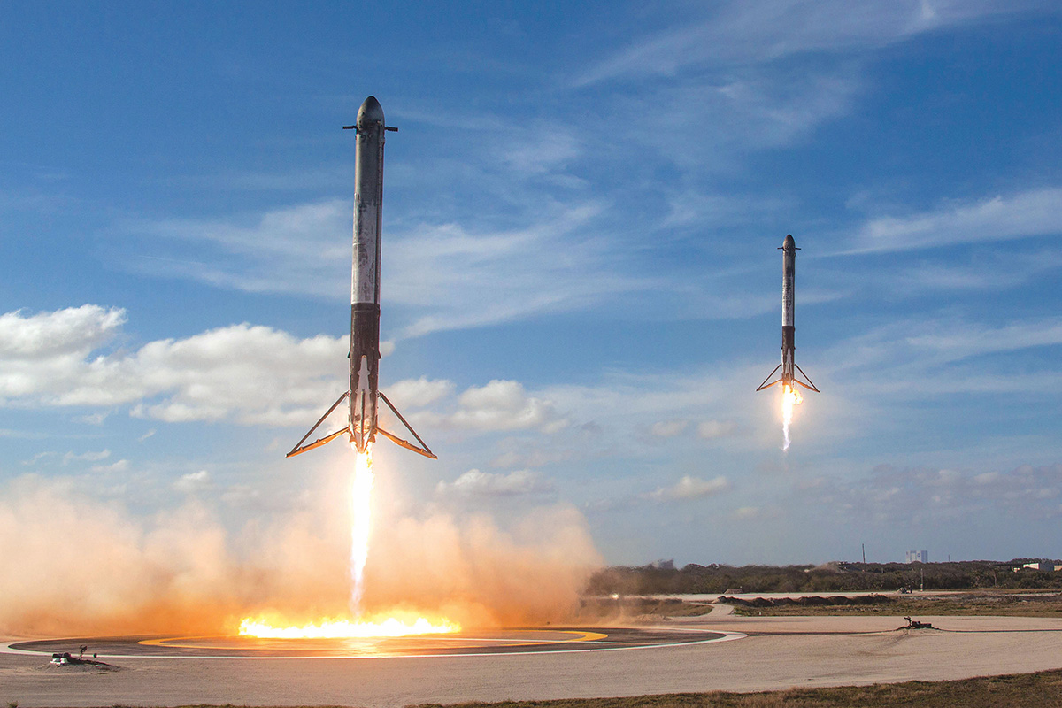 Kvapą labiausiai gniaužė ne ilgai lauktas pakilimas. Daugiausia nerimo kėlė nusileidimas. Dvi iš trijų nešančiųjų raketų, vasario 6-ąją nuo paleidimo aikštelės Kanaveralo kyšulyje pakėlusių pirmąją „SpaceX Falcon Heavy“, po 8 min. grįžo atgal. Iš pradžių pasirodė raketų liepsnos, tada trenkė garso smūgis, ir ant netoliese įrengtų nusileidimo aikštelių sekundės dalies skirtumu vienas po kito nutūpė du grakštūs bokštai. Po tokios jėgos – toks subtilumas.
