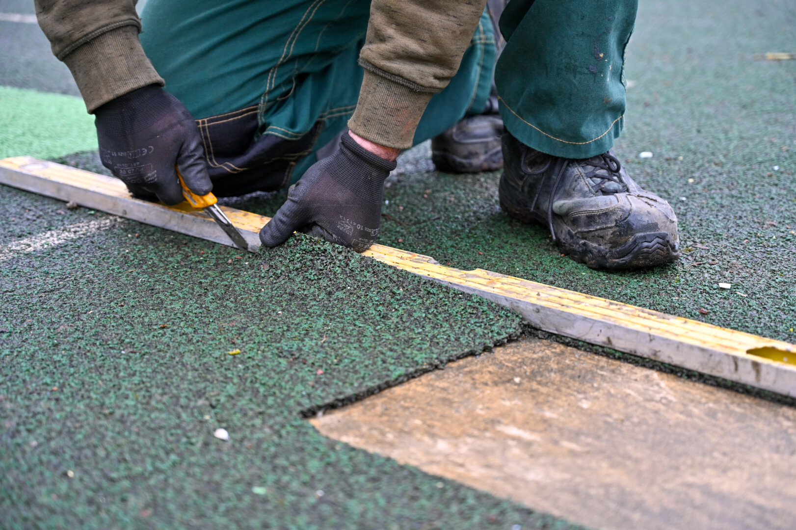 „Keista, kad danga buvo keičiama ne visa, o tik lopais. Senoji tamsiai žalia, o naujai dedami lopai – šviesiai žali. Gal visą aikštelės dangą nudažys vienodos spalvos dažais, nes su tokiais lopais atrodo apgailėtinai“, – pirmu įspūdžiu pasidalijo pašnekovė.
