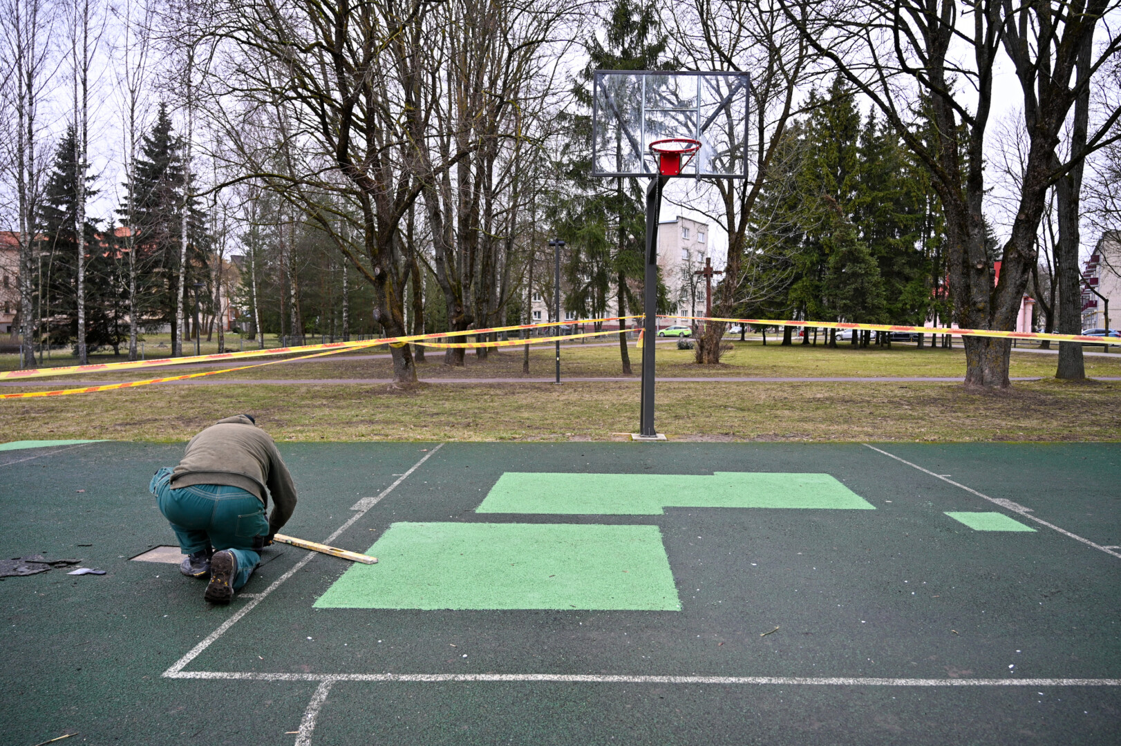 Dar praėjusią vasarą ji atkreipė dėmesį, kad krepšinio aikštelės danga pradėjo luptis, tarsi būtų kiaurai ištrypta.