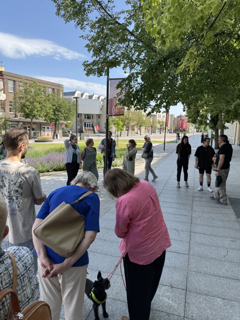 Kartu su atėjusiais žmonėmis ji žingsniavo nuo Laisvės aikštės iki pirmosios mieste spaustuvės Bataliono gatvėje, aplankė Dailės galeriją, G. Mazūro galeriją po atviru dangumi, užsuko į J. Masiulio knygyno kiemelį, perėjo Vasario 16-osios gatve.