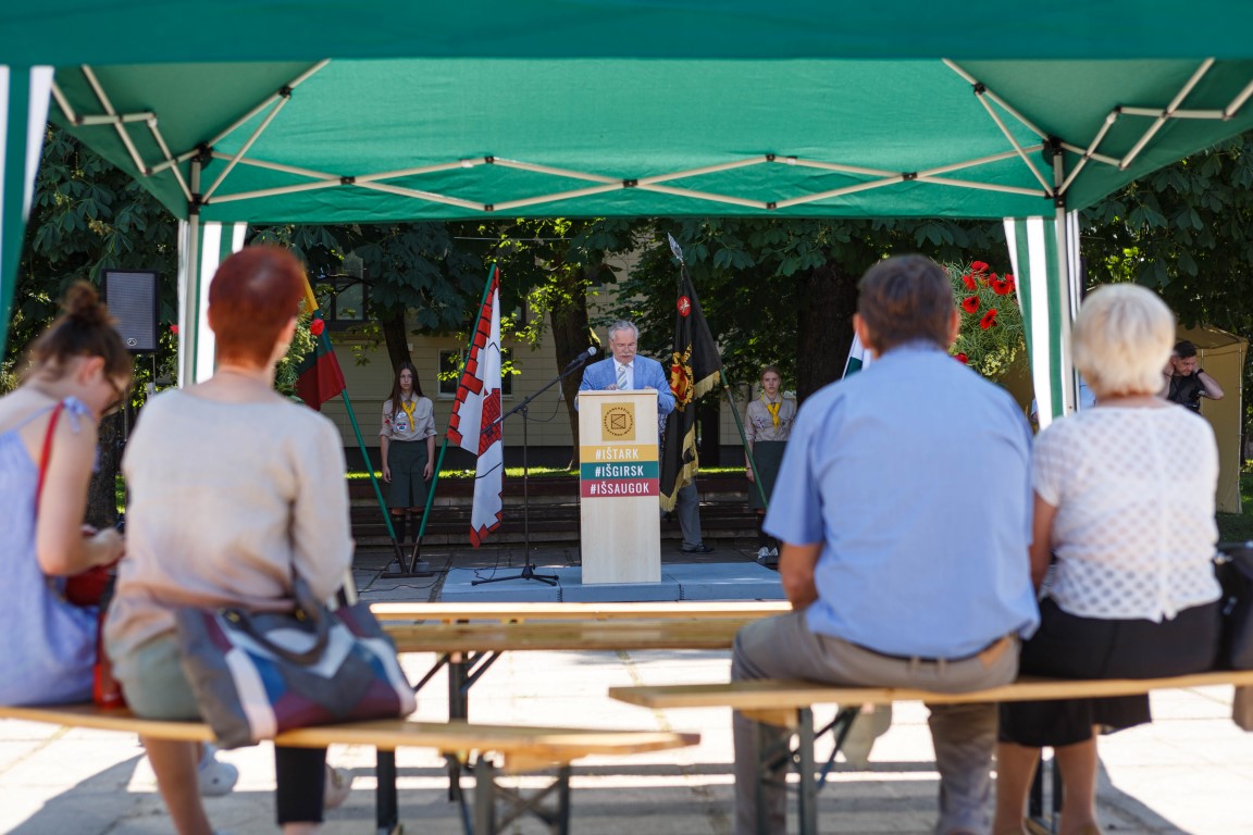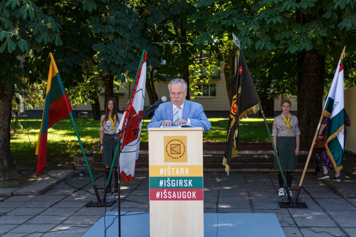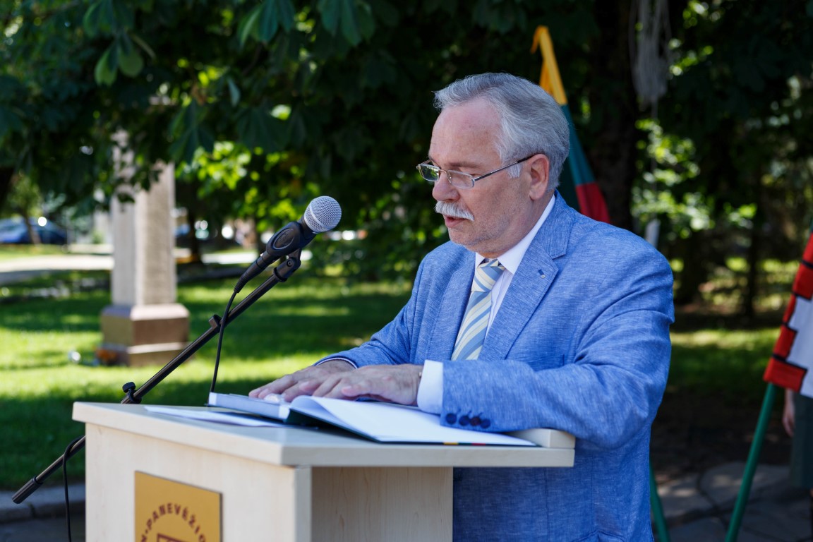 „1941-ųjų birželį Sovietų Sąjunga pradėjo kraupią lietuvių tautos naikinimo puotą. Lietuvos kūrėjai, jos šviesuomenė, seneliai ar kūdikiai – niekas nebuvo apsaugotas nuo brutalios prievartos ir siekio sugniuždyti Lietuvą, sugniuždyti lietuvį ir jo dvasią. Tada sovietams pavyko okupuoti mūsų šalį, bet nepavyko pavergti mūsų žmonių. Tegu šis istorijos tarpsnis būna tvirtybės simboliu ir pavyzdžiu mums ir mūsų palikuoniams“, – Gedulo ir vilties dienos minėjime kalbėjo Panevėžio meras Rytis Mykolas Račkauskas.