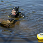 Į Nevėžį ties Smėlynės gatvės tiltu sumestas atliekas šeštadienį traukė daugiau nei dešimt narų – povandeninės medžioklės entuziastų;