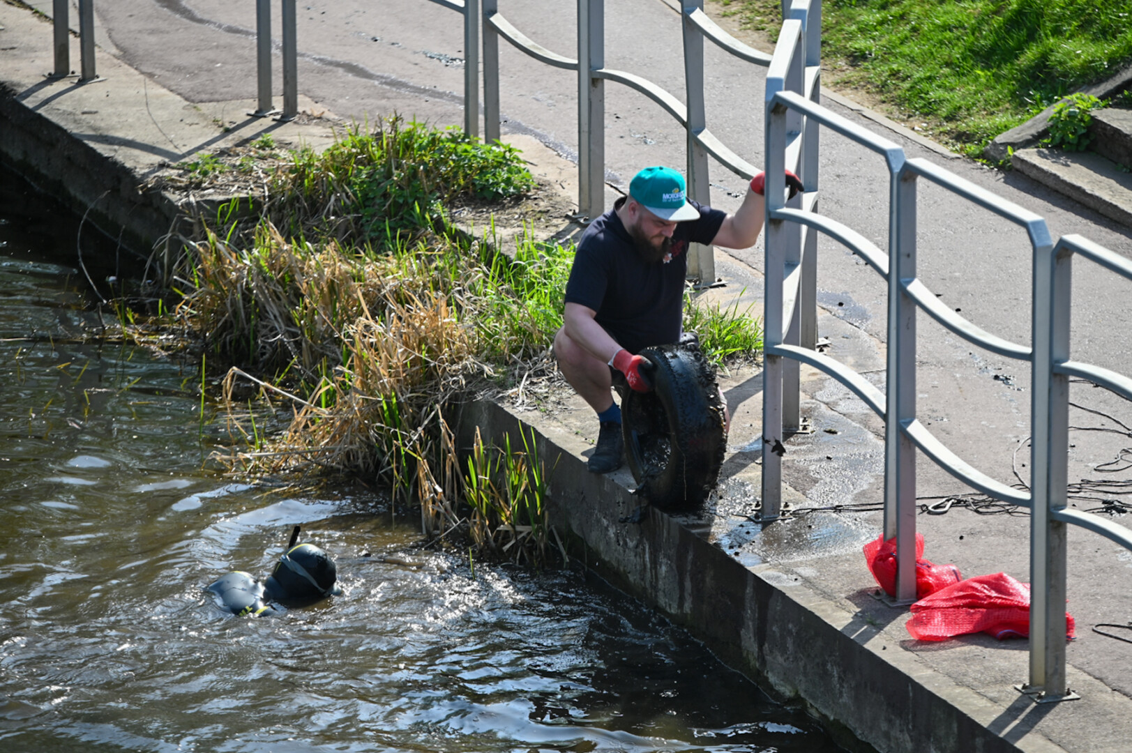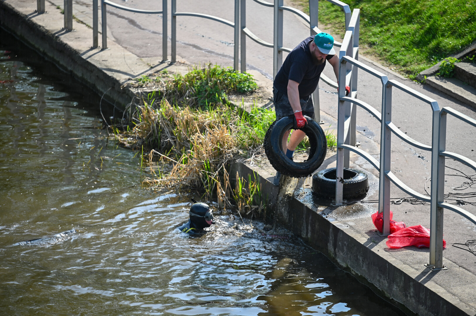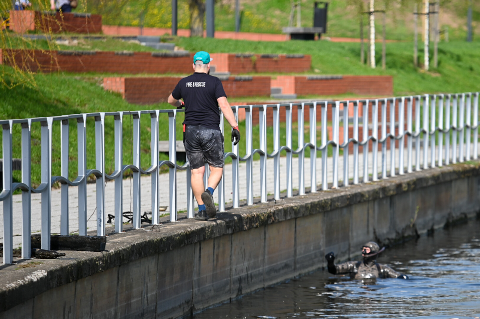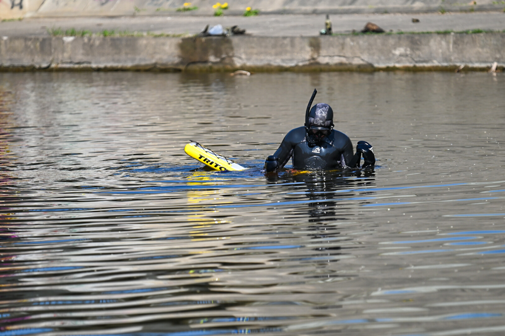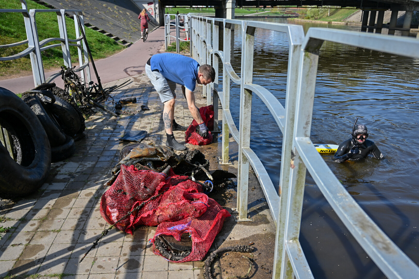 Į Nevėžį ties Smėlynės gatvės tiltu sumestas atliekas šeštadienį traukė daugiau nei dešimt narų – povandeninės medžioklės entuziastų;