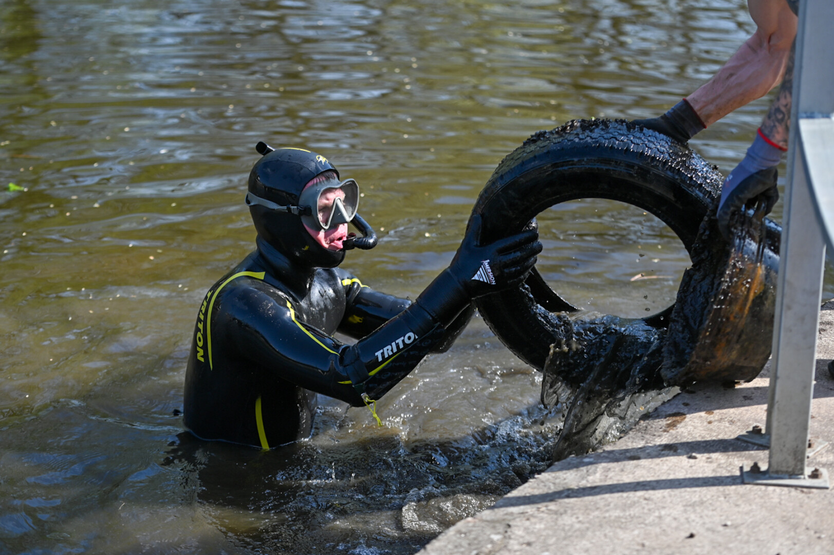 Švarinti upę narams padėjo ir pati gamta – matomumas po vandeniu siekė net du metrus, nors neretai povandeninės medžioklės entuziastai į gelmes leidžiasi, kai matyti vos per rankos ilgį.