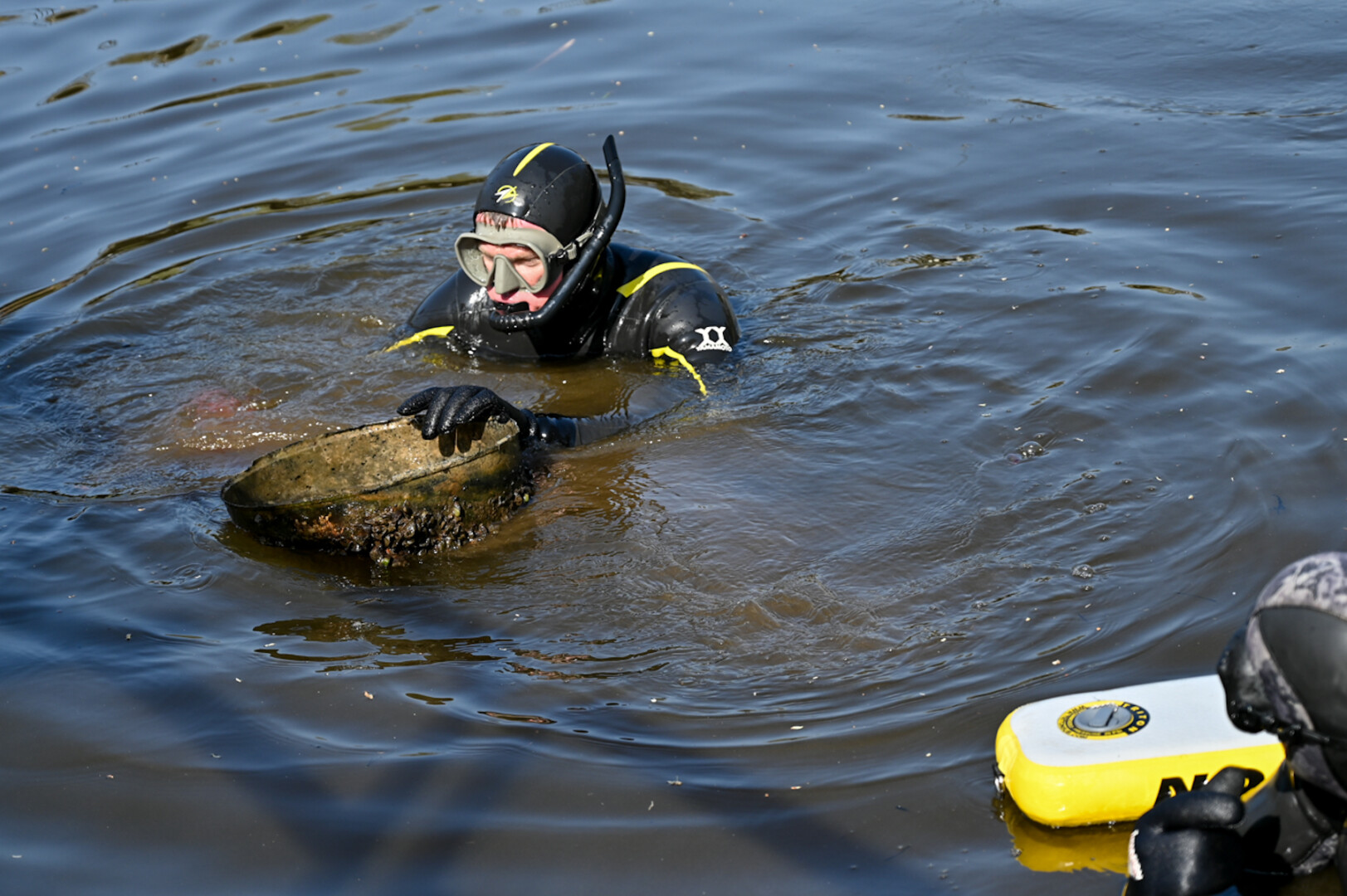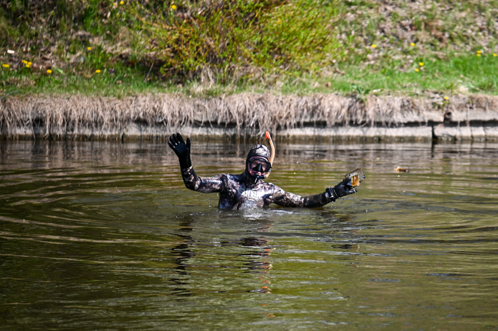 Pirmą kartą per keliolika metų, kai povandeninės medžioklės klubas „Gelmė“ organizuoja tokias akcijas, upės švarintojams teks pasukti galvas, ką su radiniu daryti.