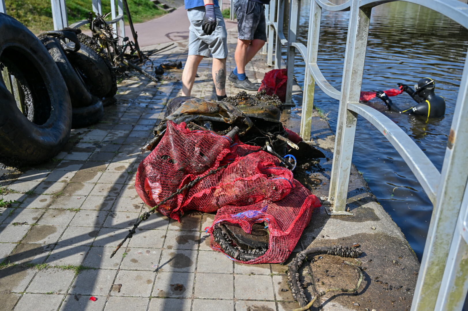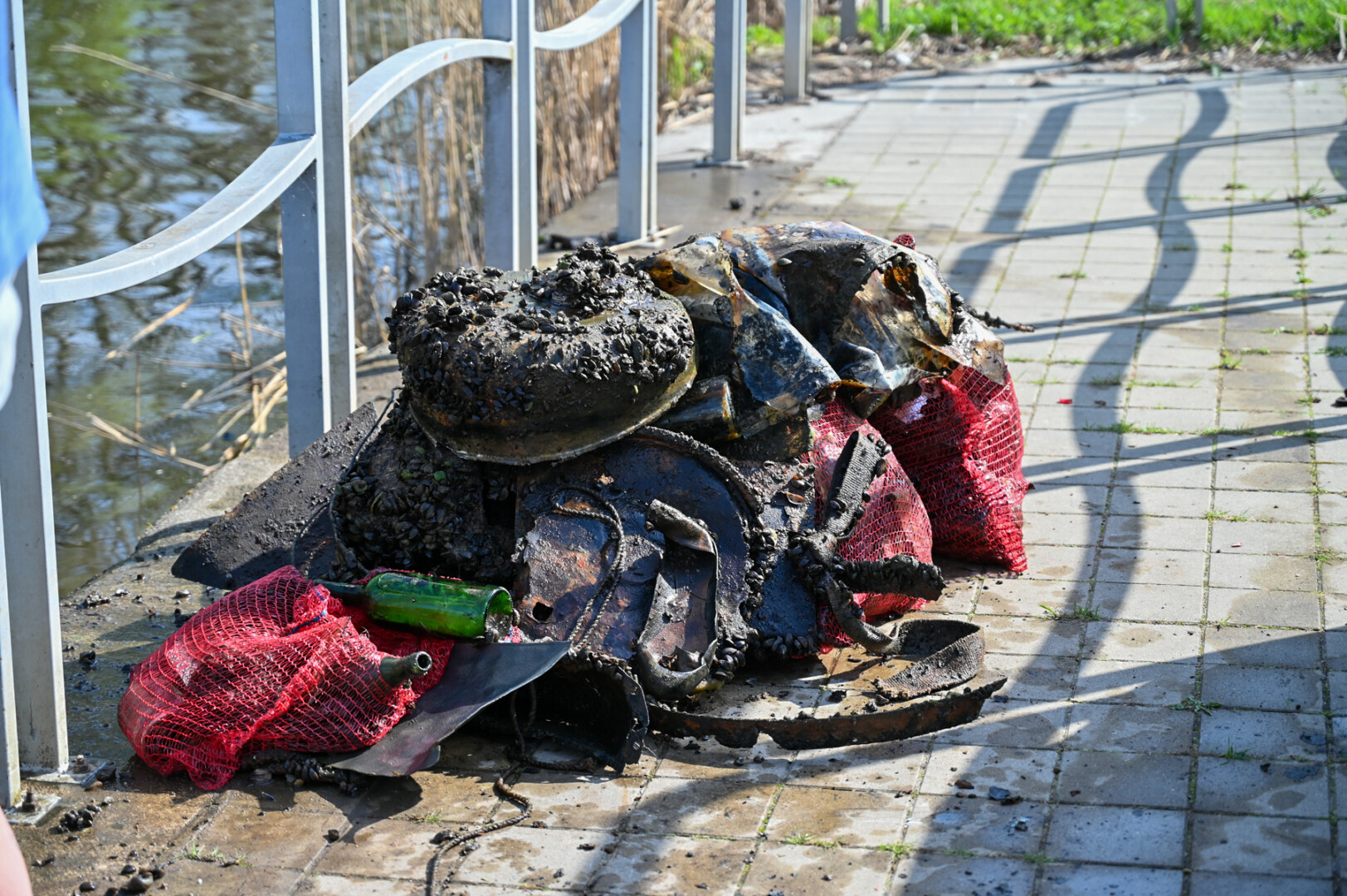 Švarintojai iš dugno ištraukė padangų, dviračio rėmą, automobilio ir net skalbimo mašinos detalių, butelių, gausybę plastikinių maišelių, kažkas į vandenį nušveitė net planšetę. Tradiciškai upės dugne mėtėsi ir batai, apatiniai drabužiai, netgi pinigai.