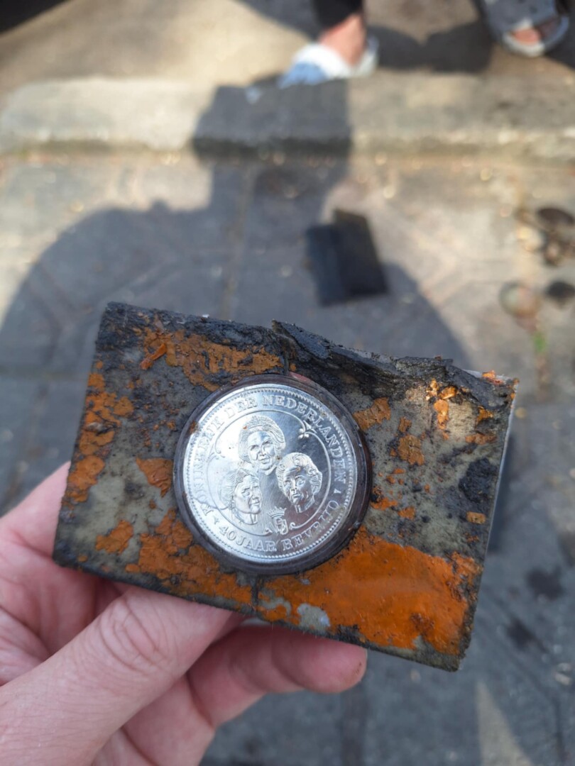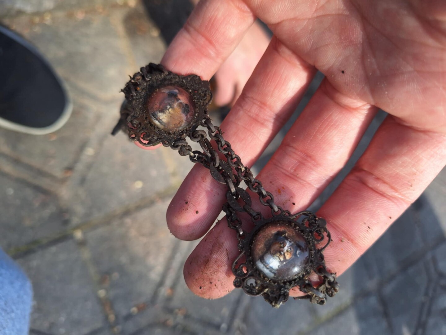 Dabar belieka tik spėlioti, kaip atsitiko, kad į vandenį buvo išmesta kojinė, prigrūsta iš pirmo žvilgsnio vertingų daiktų – grandinėlių, laminuotų antikvarinių monetų su dokumentais, netgi kariška vardine moneta.