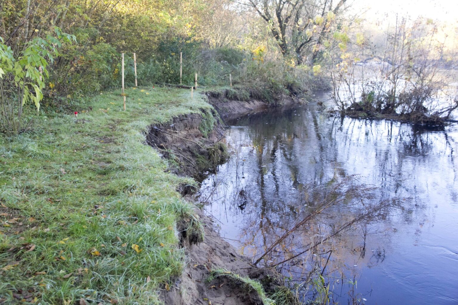 „Jau šį pavasarį per polaidį pastebėjome, kad upė ėmė keisti vagą ir artėti link pylimo, kur supiltas dumblas. O rudenį, kai iškrito rekordinis kiekis kritulių, šis procesas dar labiau paspartėjo. Liko vos 3,5 metro iki pylimo šlaito krašto“, – „Sekundei“ teigė S. Mikeška.