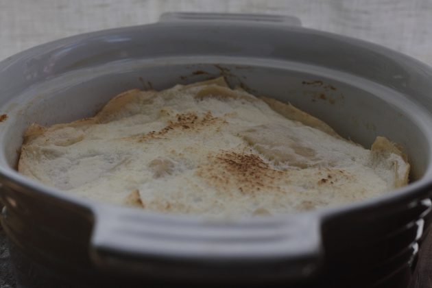 su šaukšteliu maskarponės. Gerai įkaitintoje keptuvėje su šlakeliu aliejaus mentele užtepkite plaktos masės. Nevartydami kepkite 6–7 minutes. Kai apkepa kaip blynelis, atsargiai nuimkite mentele.